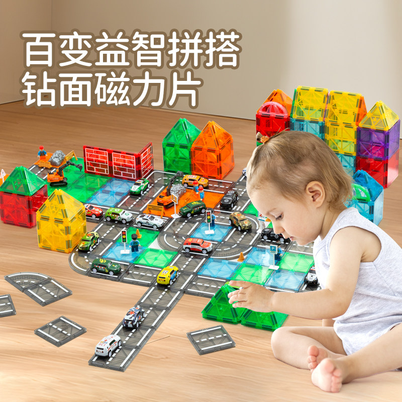 建筑工程磁力片小车3到6岁男孩礼物儿童磁铁拼图积木益智拼装玩具
