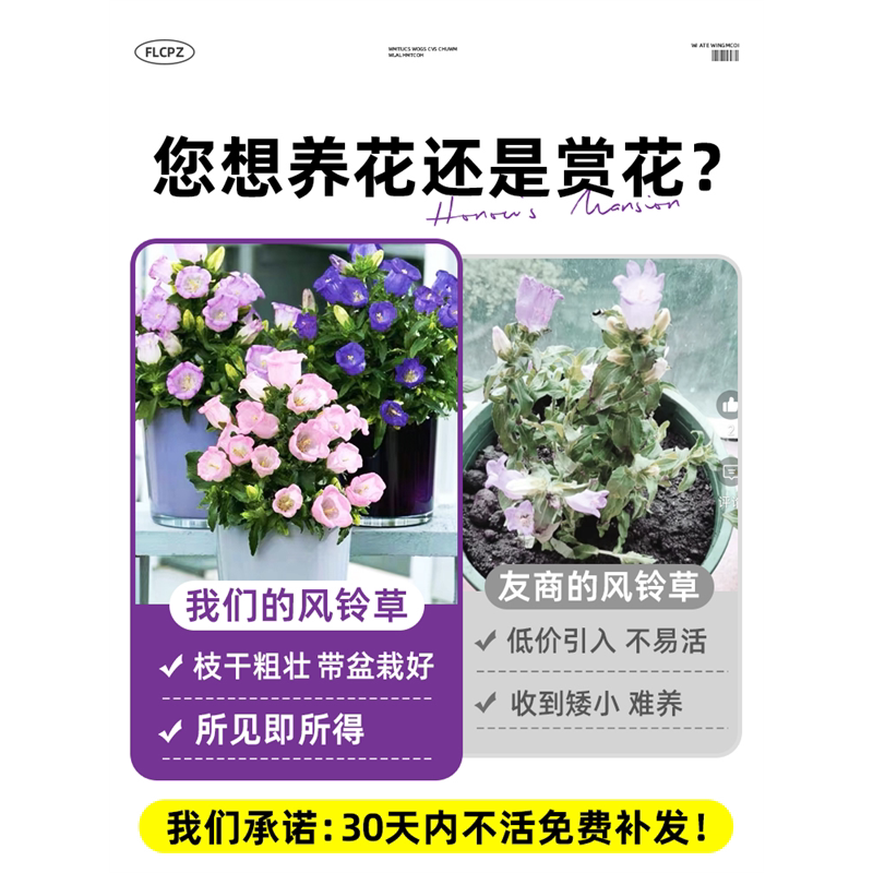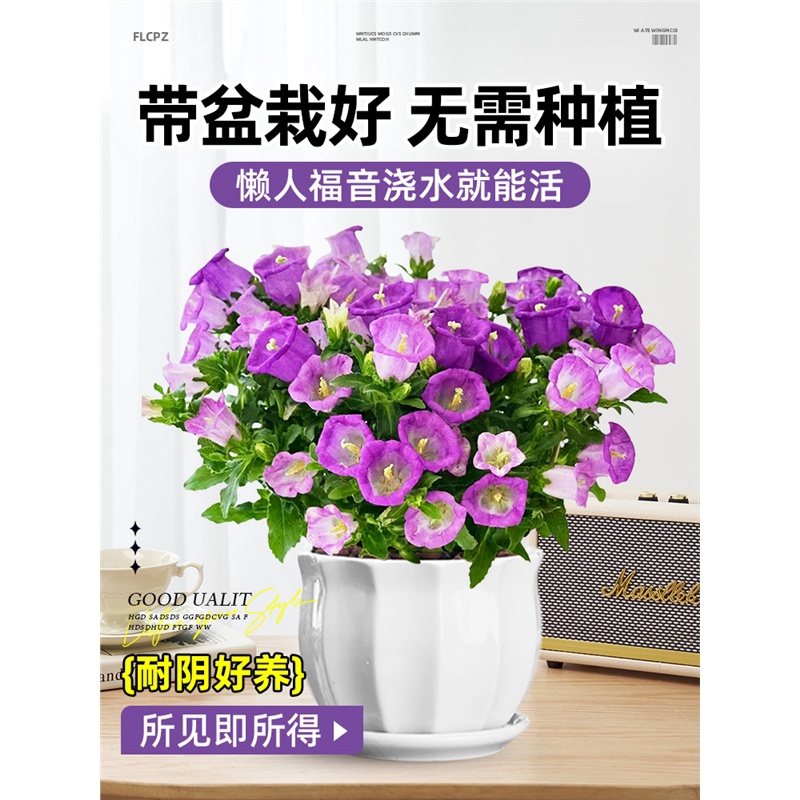 风铃花盆栽带花苞大花风铃草酒杯阳台鲜花绿植紫色风铃花苗室内