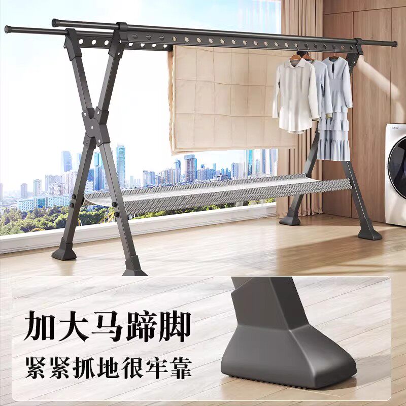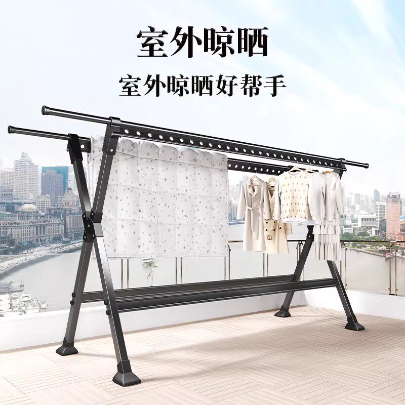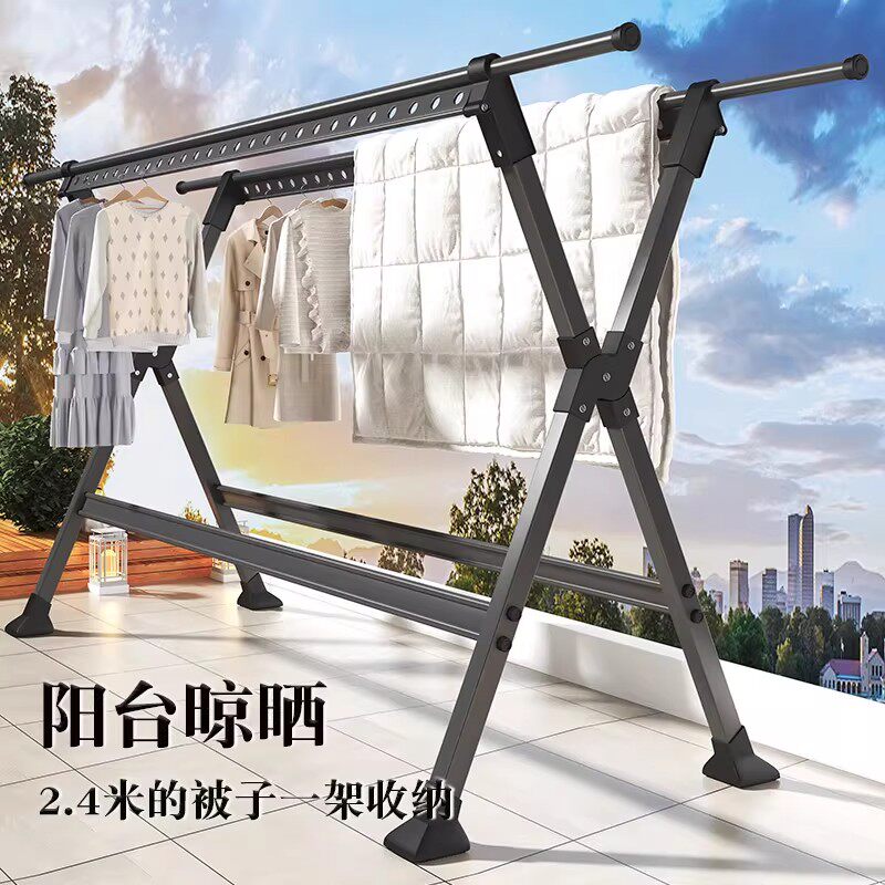 晾衣架落地家用阳台挂衣服折叠伸缩晒衣架室内外凉衣杆晒被子神器