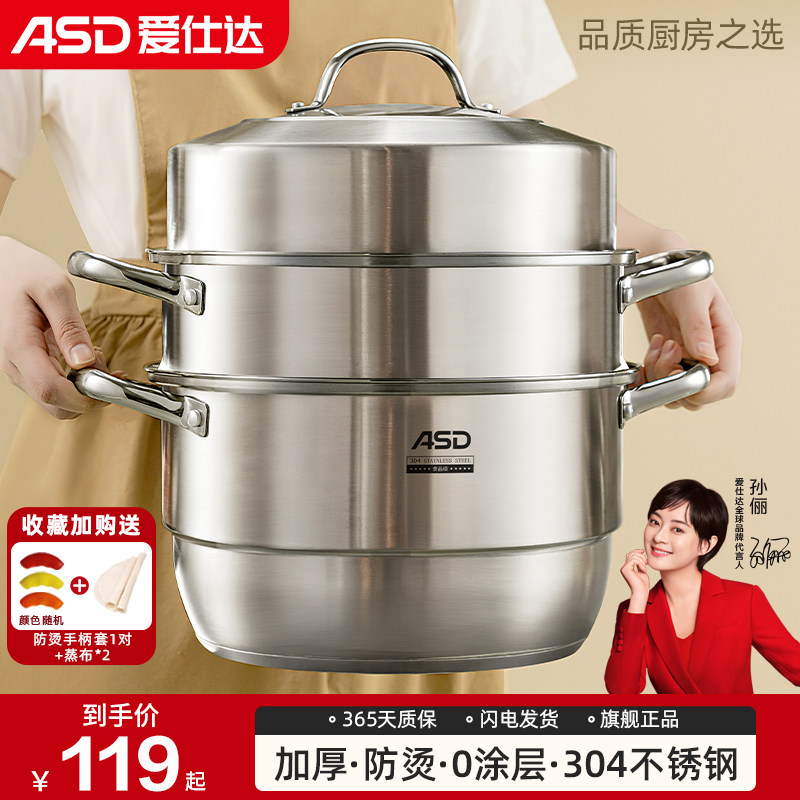 爱仕达蒸锅全304不锈钢家用三层加厚蒸笼馒头煮炖汤锅燃气电磁炉