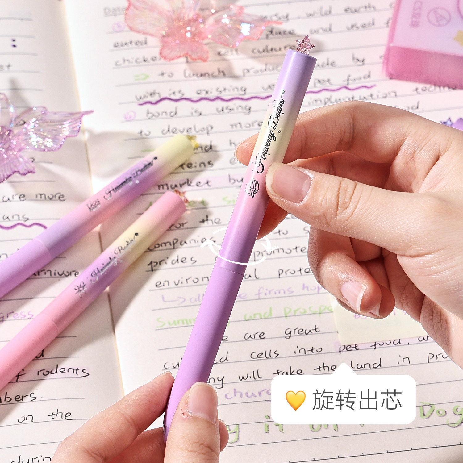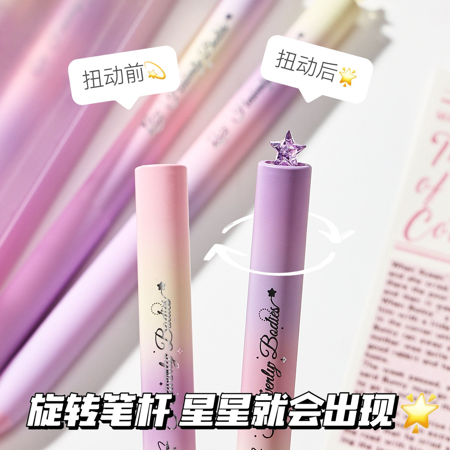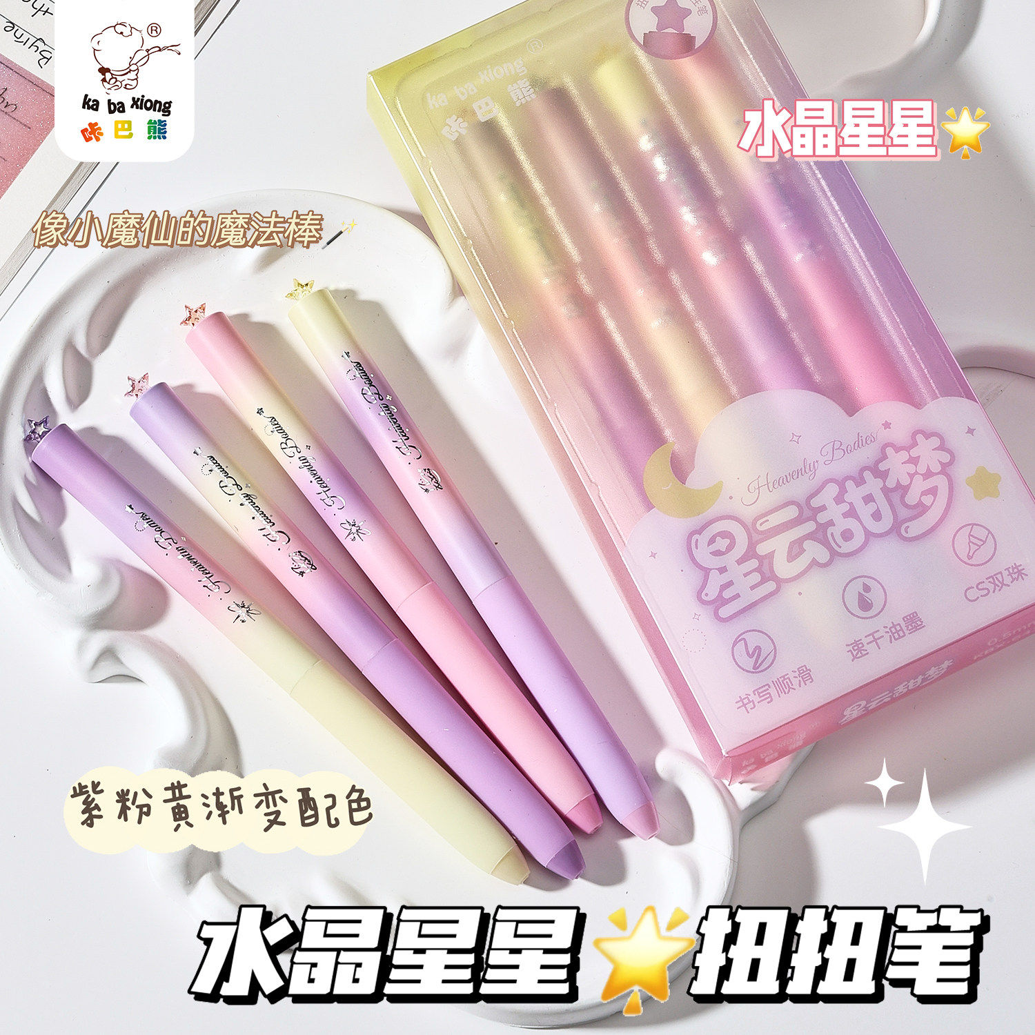 咔巴熊水晶星星扭扭笔旋转出芯中性笔高颜值ins风黑笔速干顺滑学生考试专用0.5mm刷题笔ST头好写签字笔水笔