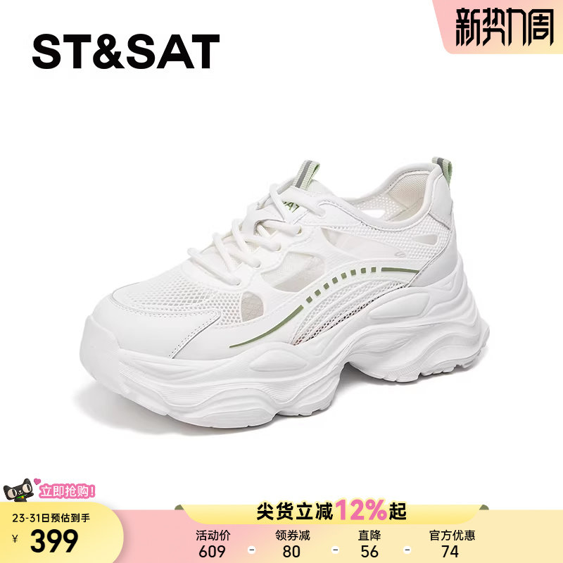 星期六厚底老爹鞋女款夏季网鞋网面镂空透气百搭运动鞋休闲小白鞋