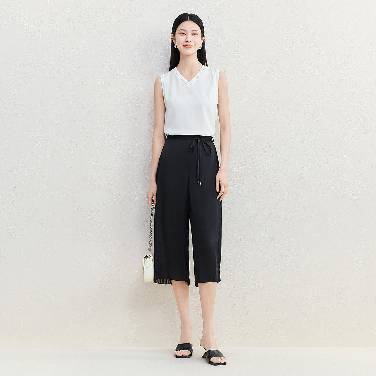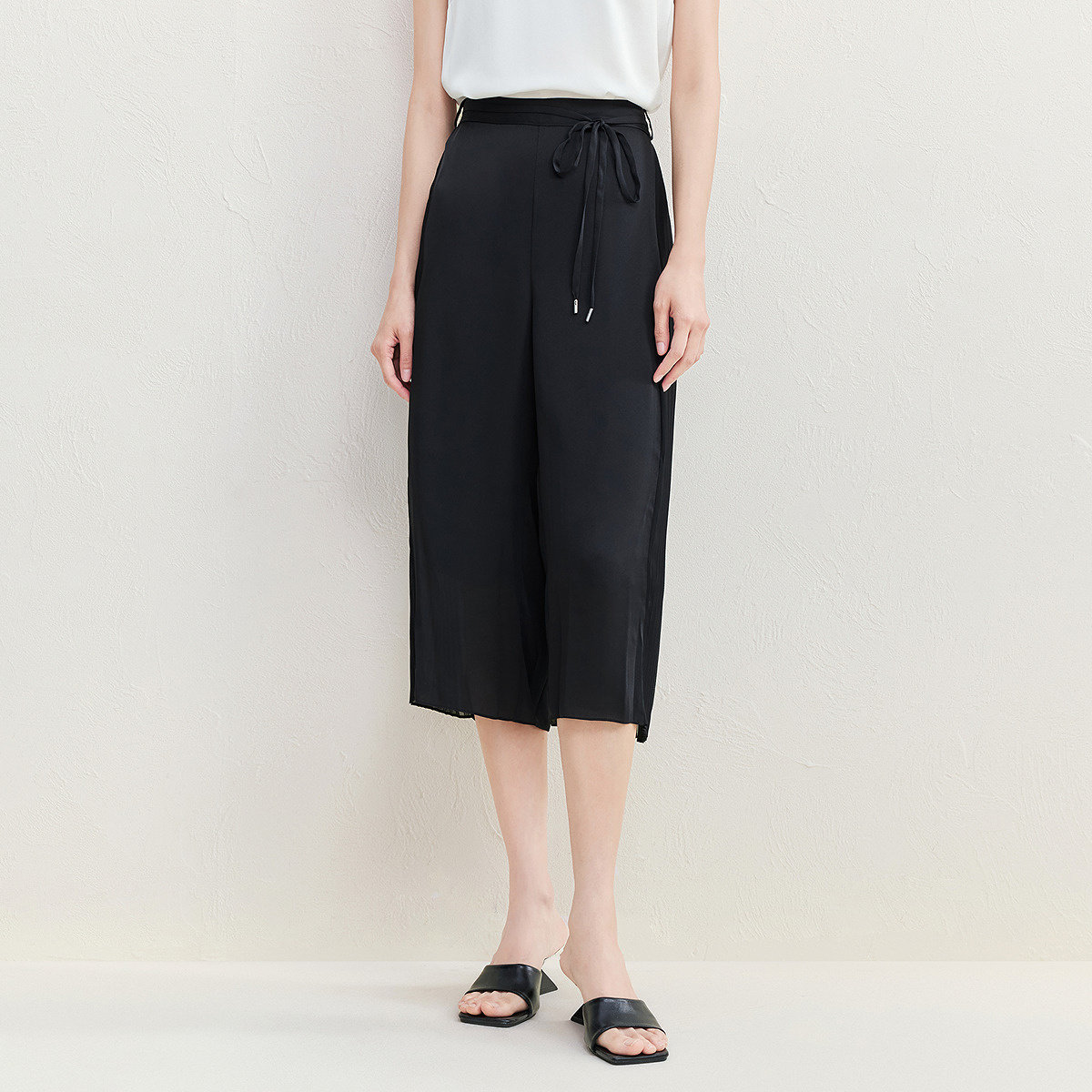 FINITY菲妮迪休闲裤2026年夏季新款简约黑色重要宽松七分阔腿裤女