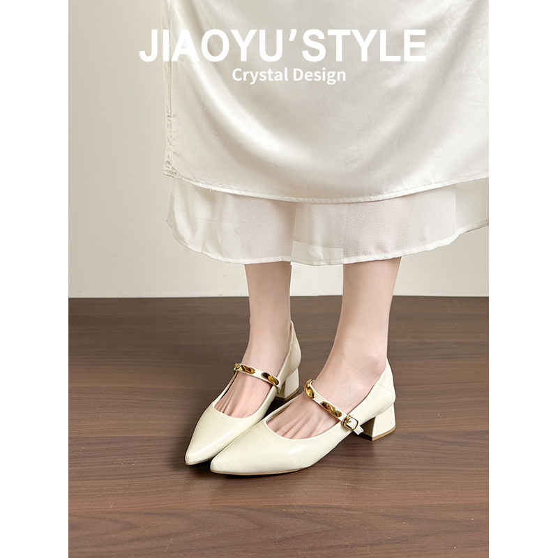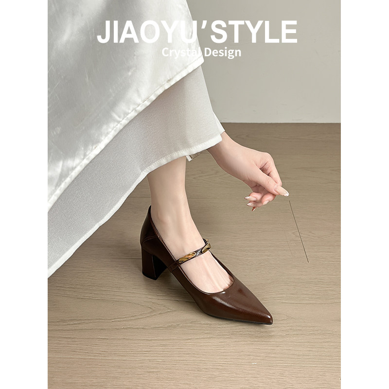真皮~骄屿 粗跟玛丽珍高跟鞋女气质高级软小个子绝美法式尖头单鞋