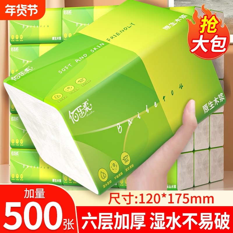 大包抽纸500张原生木桨适用餐巾纸面巾纸加厚家用卫生纸抽取式