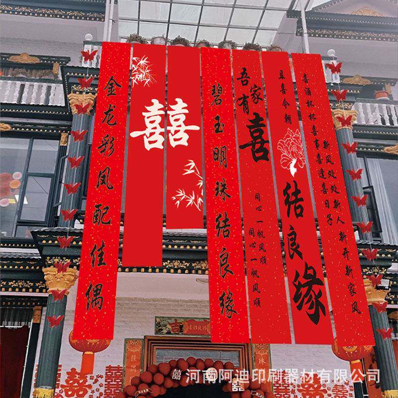 农村婚礼挂布婚布房置结条幅婚横幅超大喜字婚房装饰786拍法照书