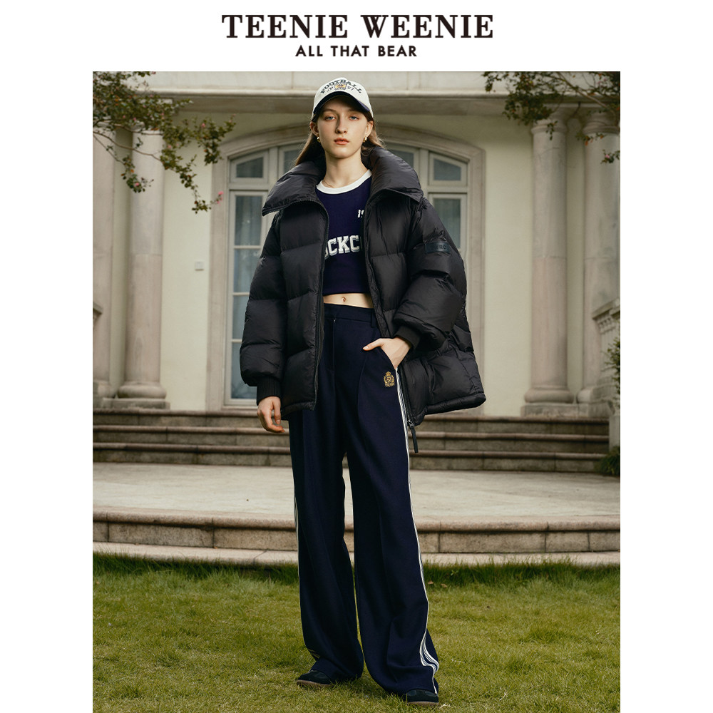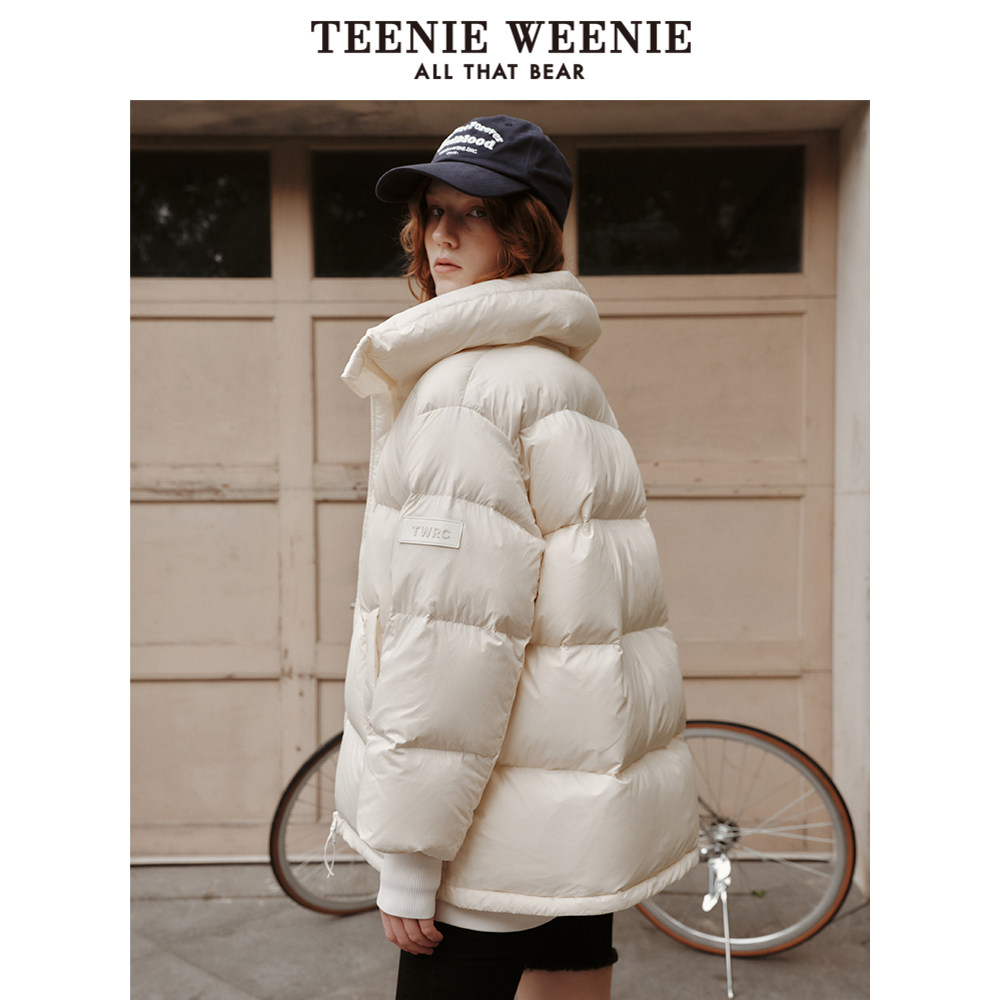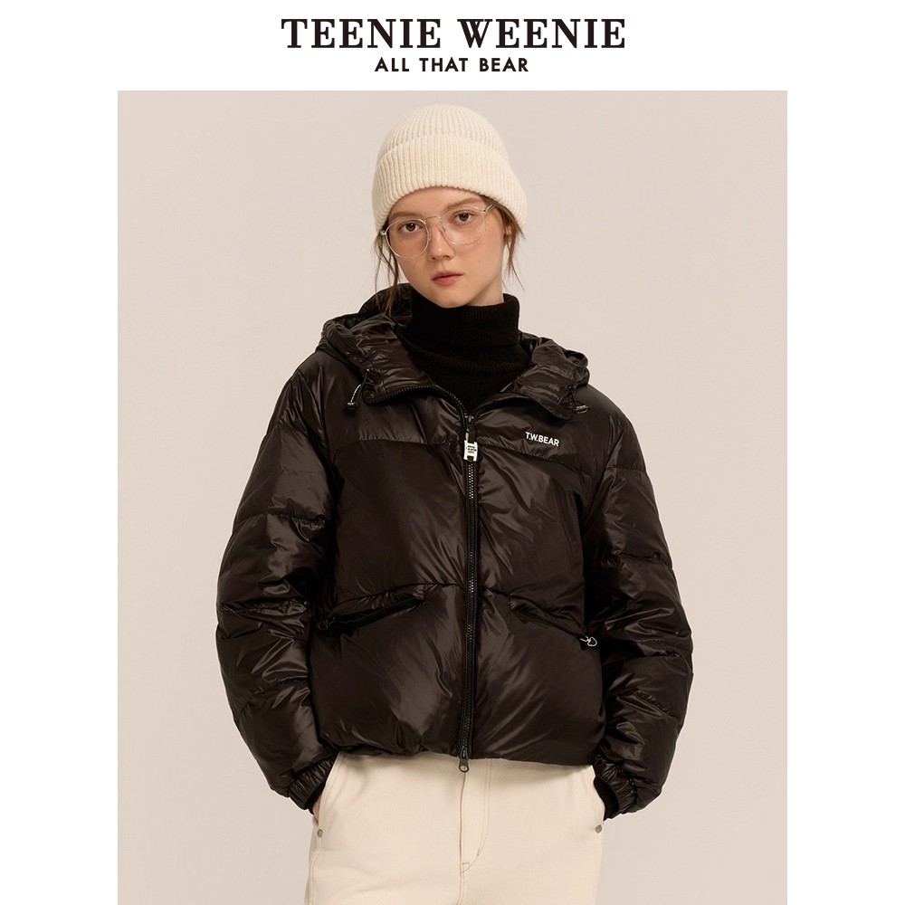 TeenieWeenie小熊奥莱女装简约休闲泡芙感白色羽绒服黑色外套上衣