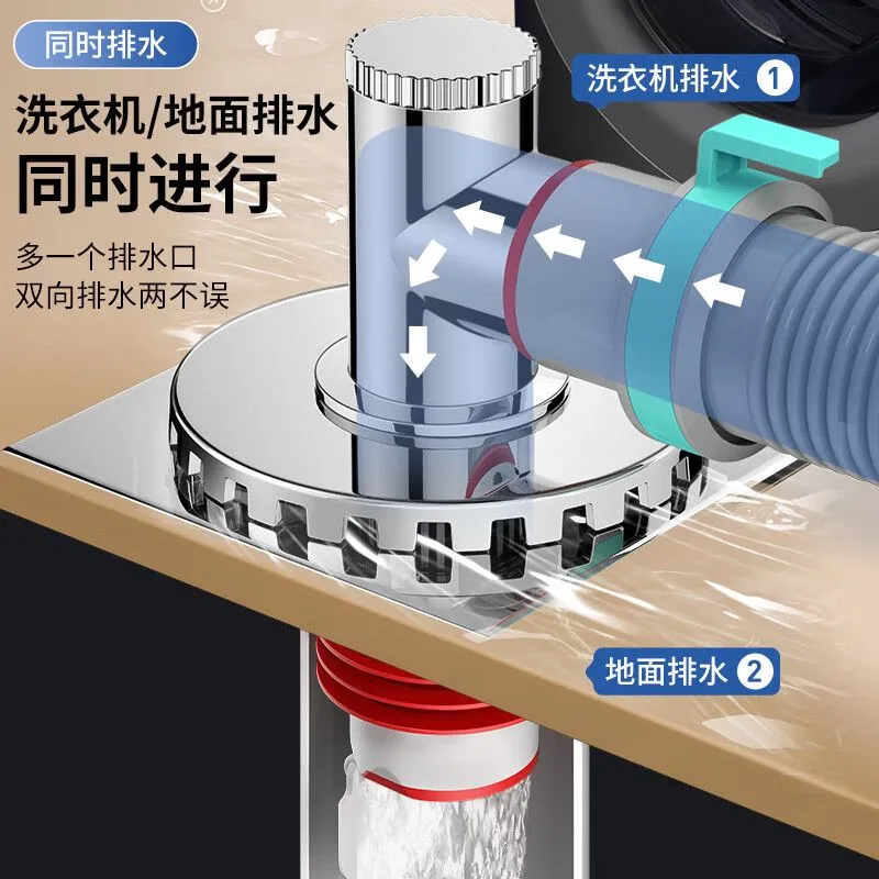 洗衣机地漏专用接头下水排水管道防反溢水二合一三通方形地漏盖子