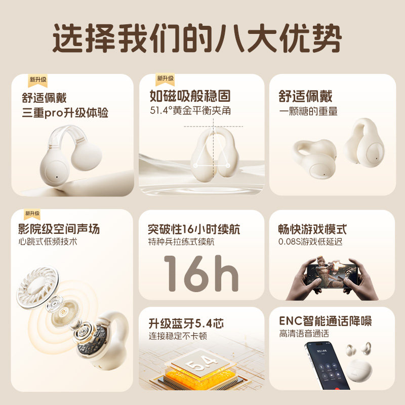 【政府补贴15%】倍思MC1耳夹蓝牙耳机2025新款AI开放式运动跑步