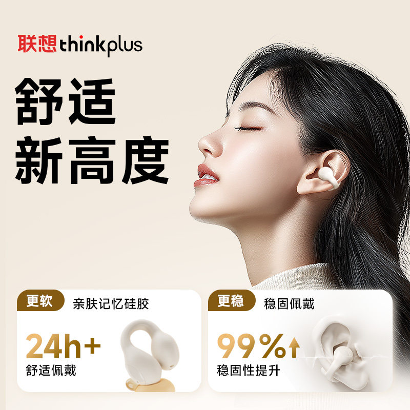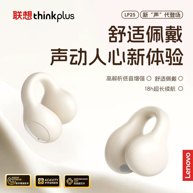 联想LP25蓝牙耳机耳夹式无线骨传导不入耳2025新款运动游戏降噪