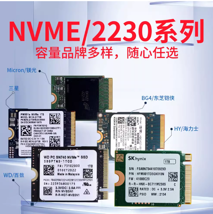 东芝铠侠KBG60ZNS西数SN740海力士PVC10三星PM9C1a-2230固态硬盘