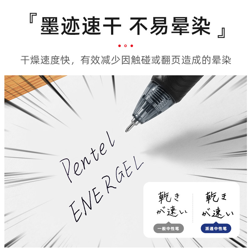 官方旗舰店 日本Pentel派通速干中性笔BLN105盒装水笔签字黑色笔芯0.5学生考研刷题按动黑笔组合倍速笔
