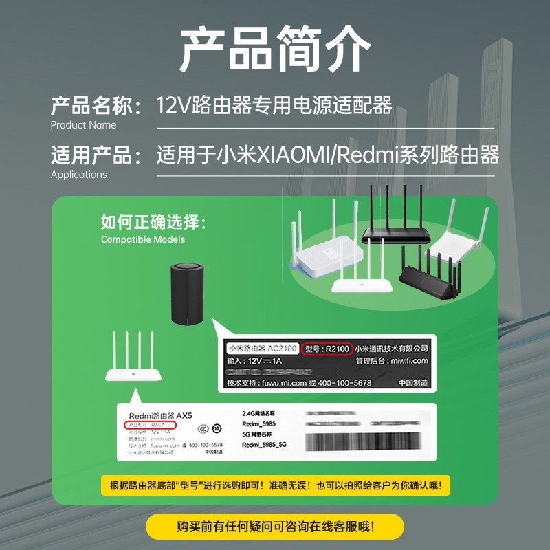 适用于小米千兆路由器AX5/AC2100/CR8808/AX1800/AX6000电源适配器线 WIFI6路由器5G双频充电器12V1A插头