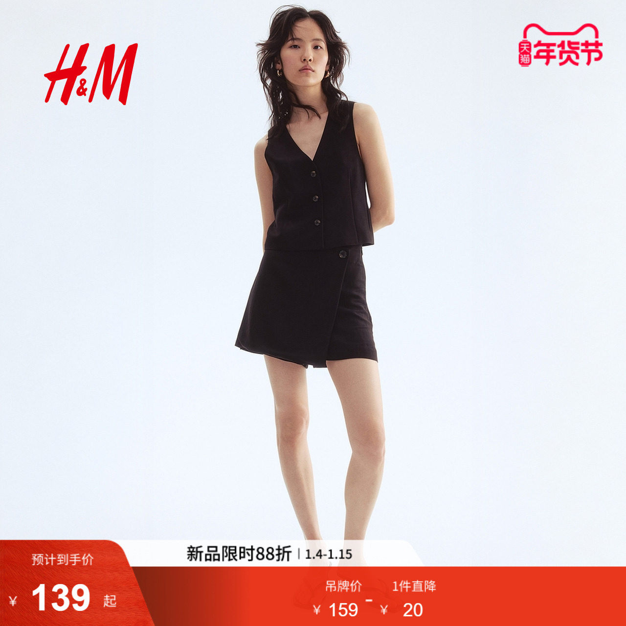 HM女装休闲裤春季通勤时尚裹身职业气质短裙裤1288135