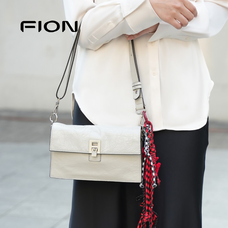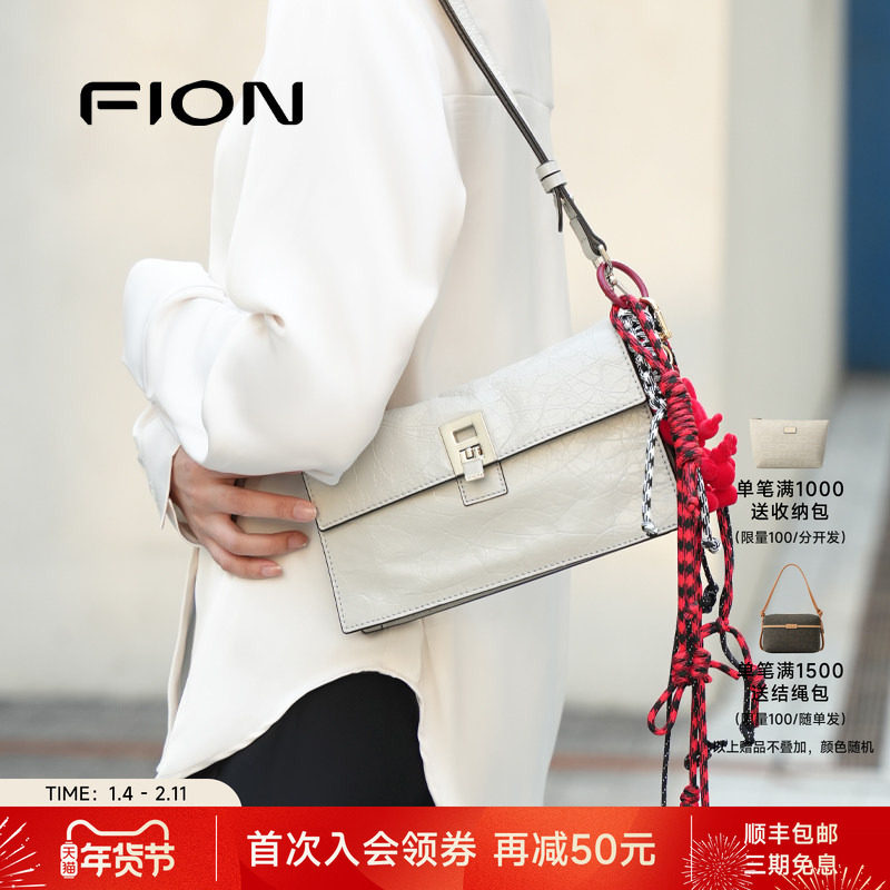 Fion/菲安妮真皮小方包2025新款单肩腋下包包女小众高级感斜挎包