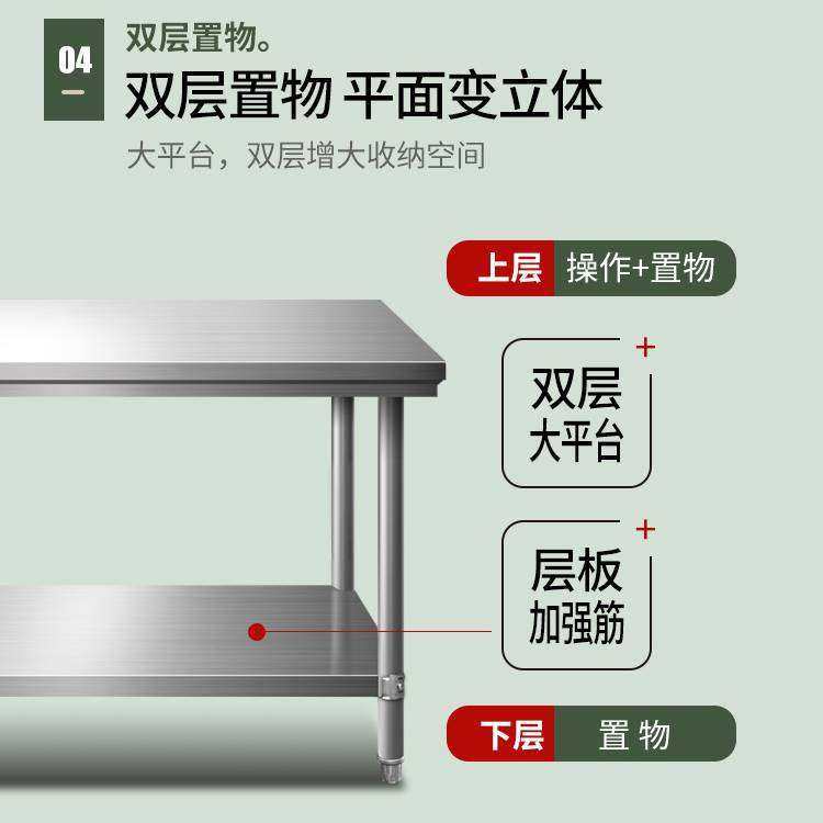 不锈钢工作台厨房加厚酒店揉面生产平面烘焙1.8米案台切菜双层后
