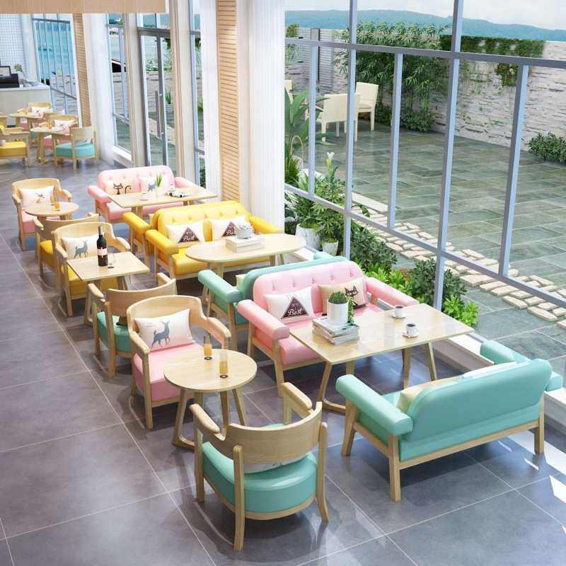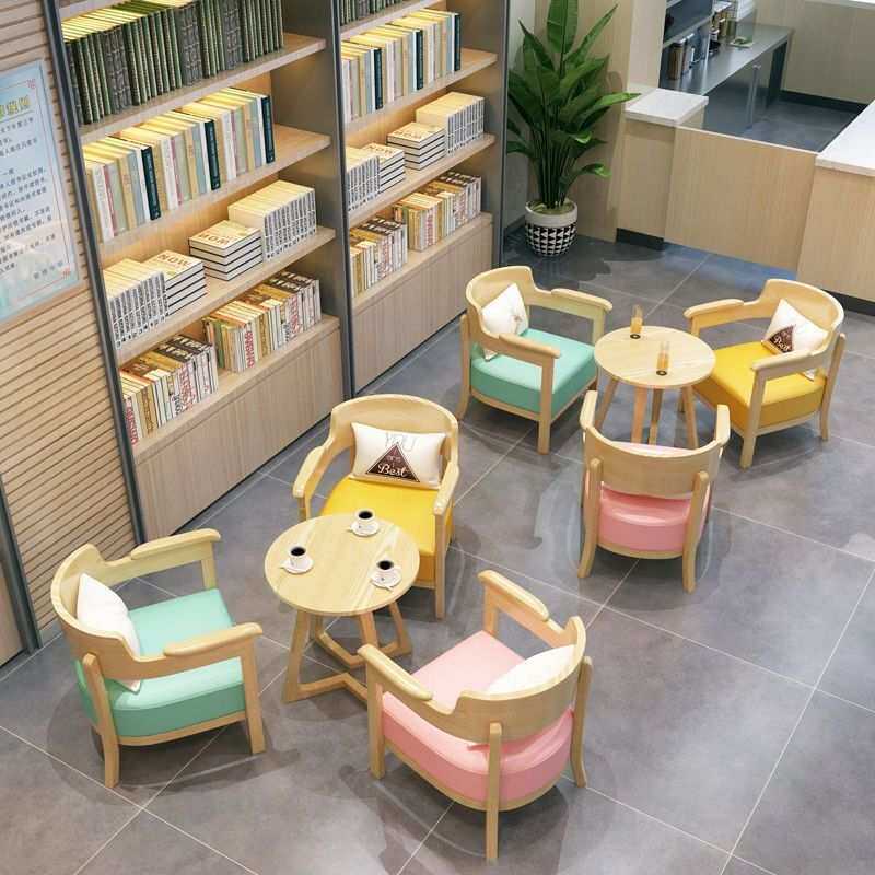 咖啡厅桌椅奶茶甜品店休闲接待洽谈会客实木沙发组合全实木商用款