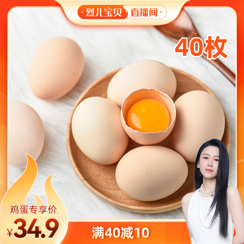 【 烈儿宝贝直播间】百食轩新鲜土鸡蛋草鸡蛋柴鸡蛋40枚 破损包赔