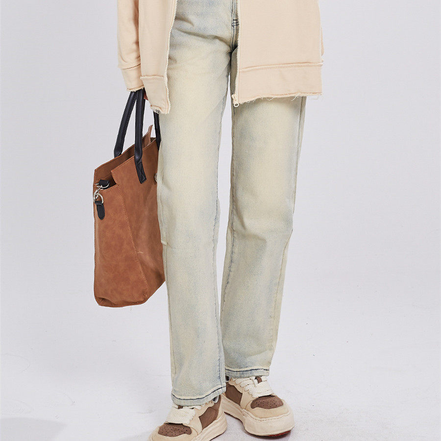 新因素2022秋冬新款黄泥染牛仔裤微弹美式高街水洗复古裤子男女款