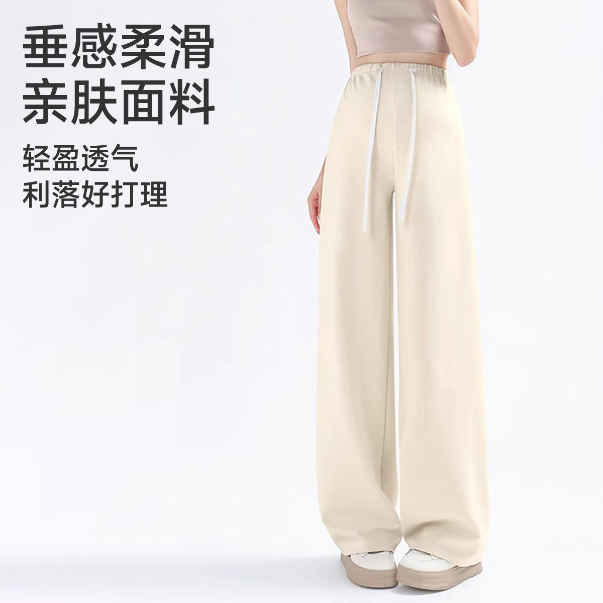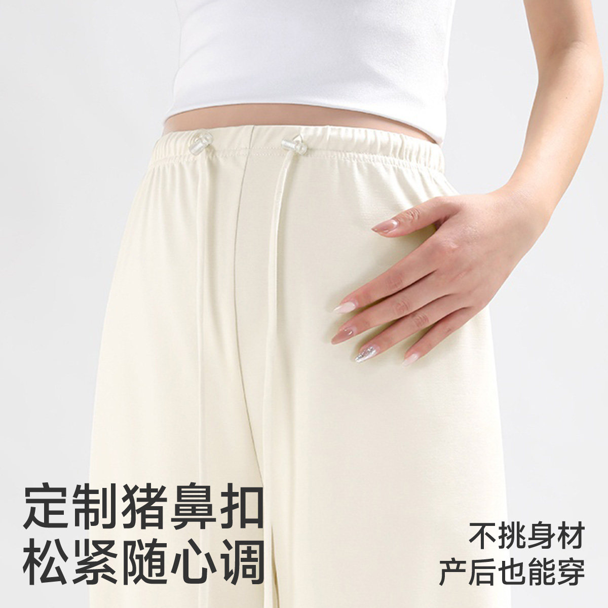 婧麒孕妇裤夏薄款外穿不勒肚子冰丝阔腿裤无托腹直筒长裤孕妇春装