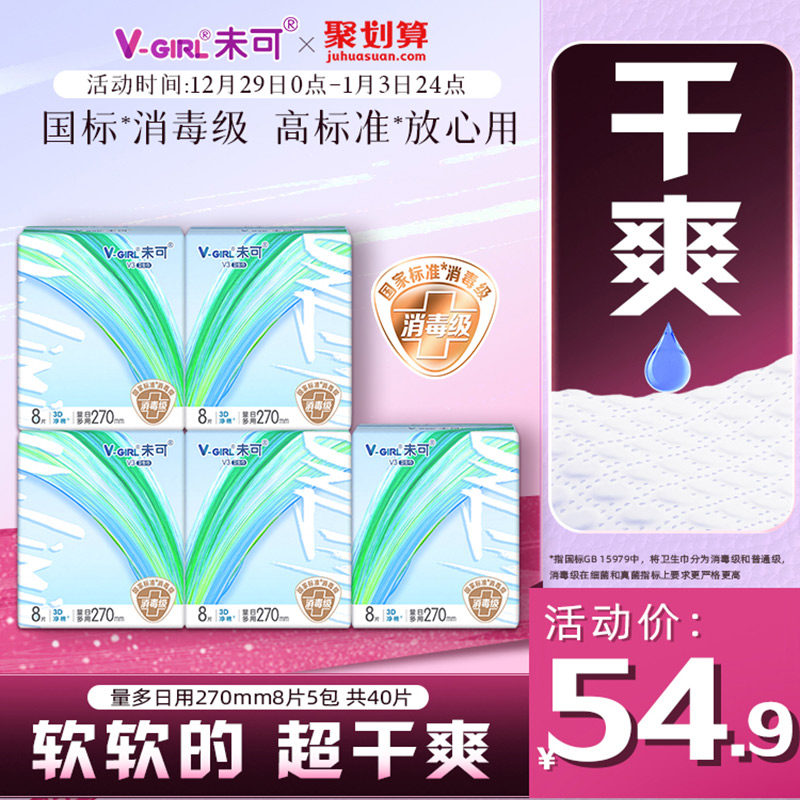 V-GIRL未可V3小浮芯消毒级卫生巾日量多日用270mm组合5包40片轻薄