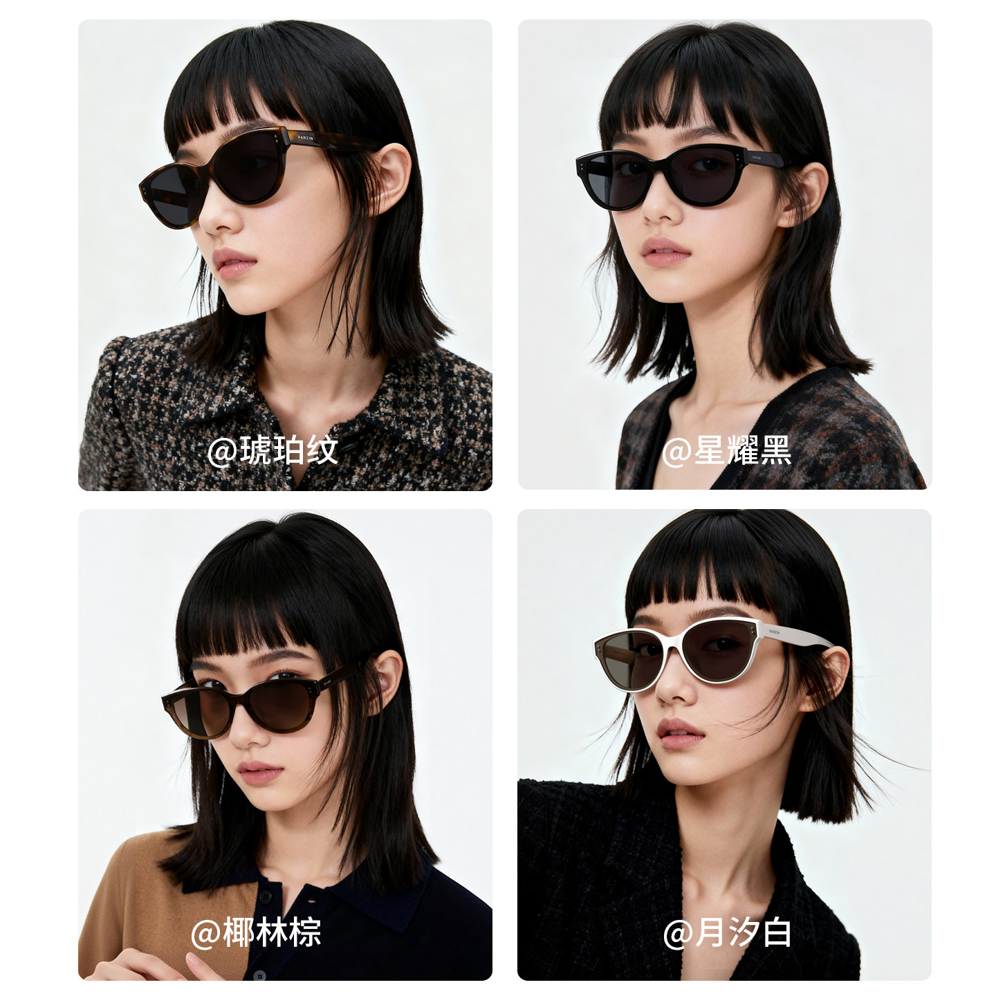 【薯薯镜】海伦凯勒新款猫眼圆框潮流太阳镜百搭俏皮墨镜女HK909