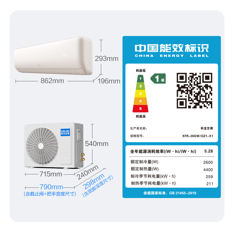 科龙空调静省电 大1匹新一级能效家用冷暖挂机以旧换新补贴26QZ