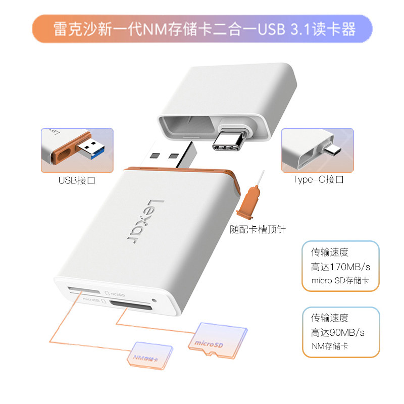 【自营】雷克沙TF/SD/CF/华为NM卡读卡器/扩展坞USB/C口高速接口
