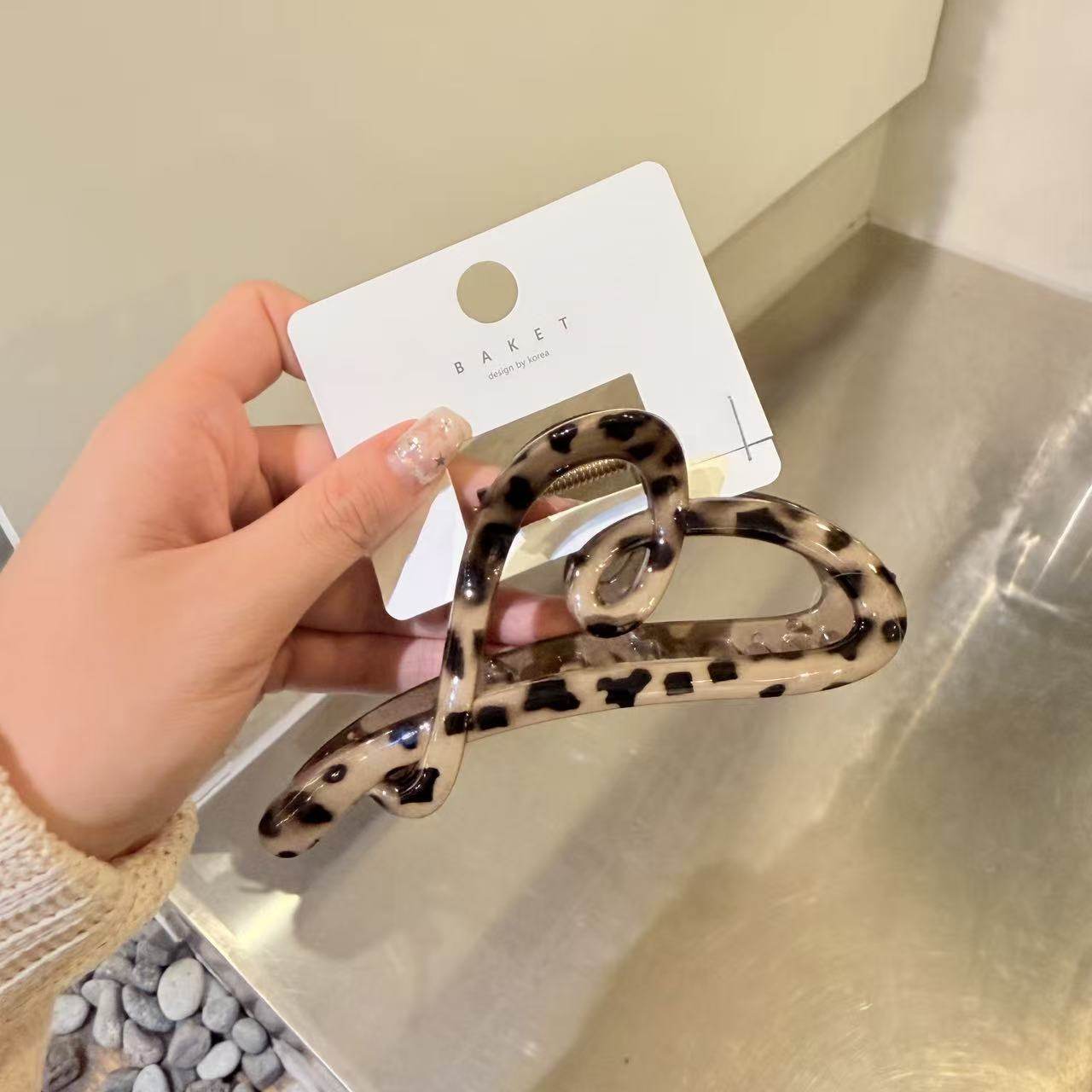 11.8韩国东大门baket发饰复古豹纹简约爱心抓夹