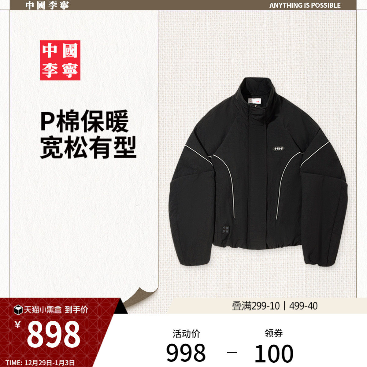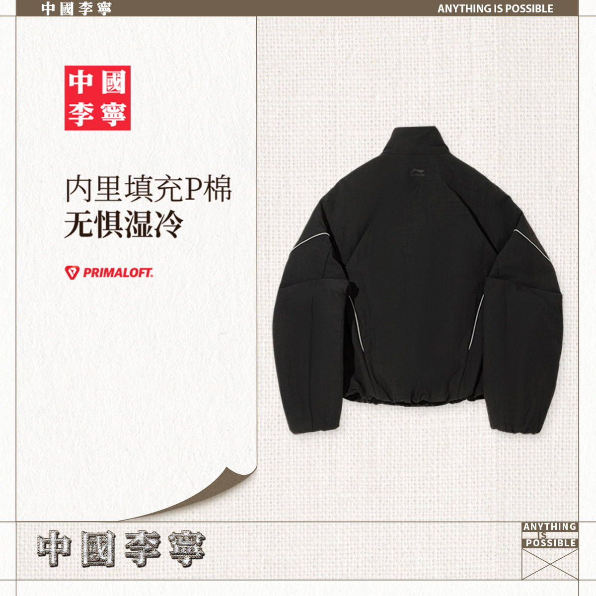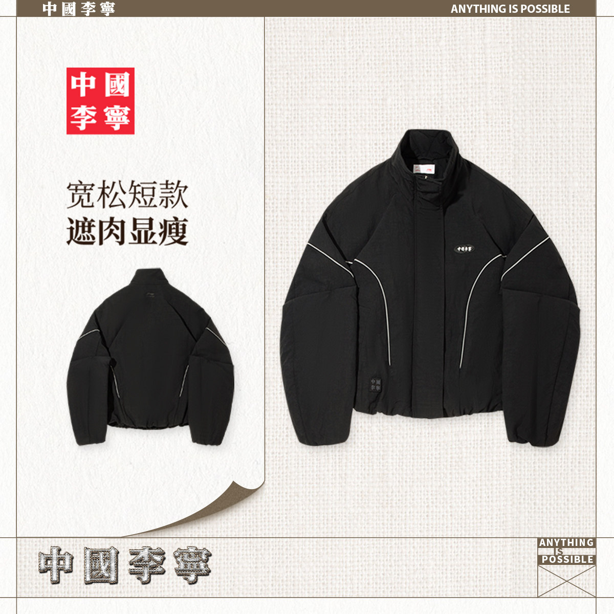 中国李宁棉服女士女装上衣2026新款春季反光宽松运动服