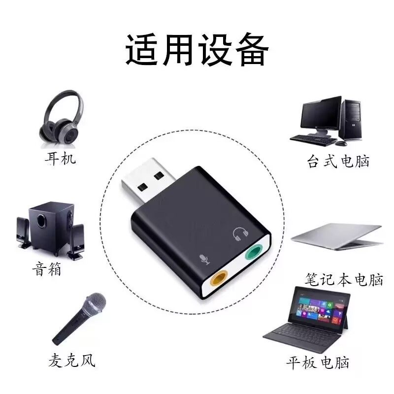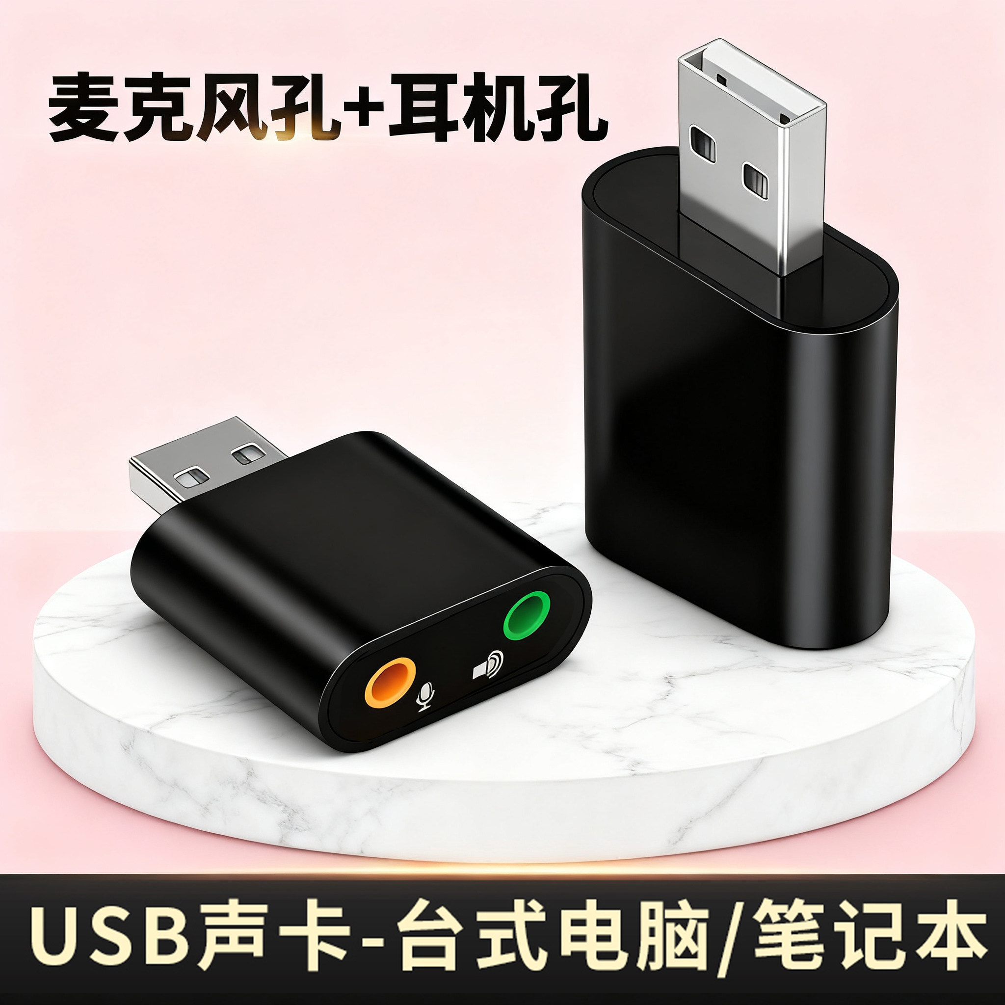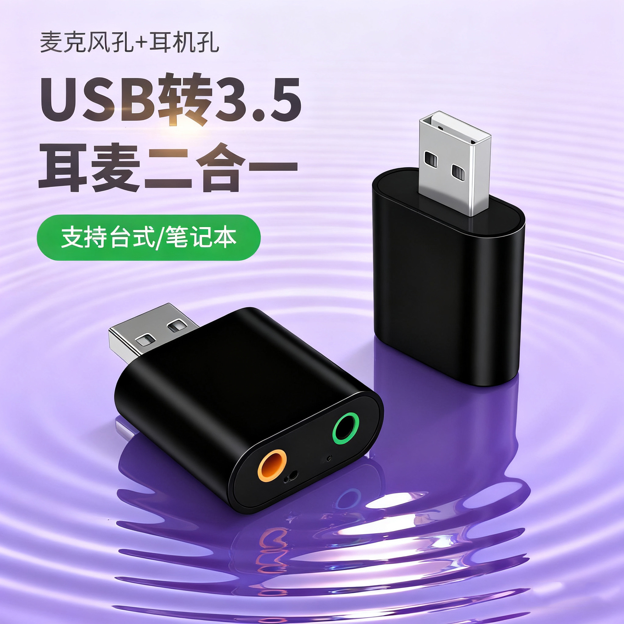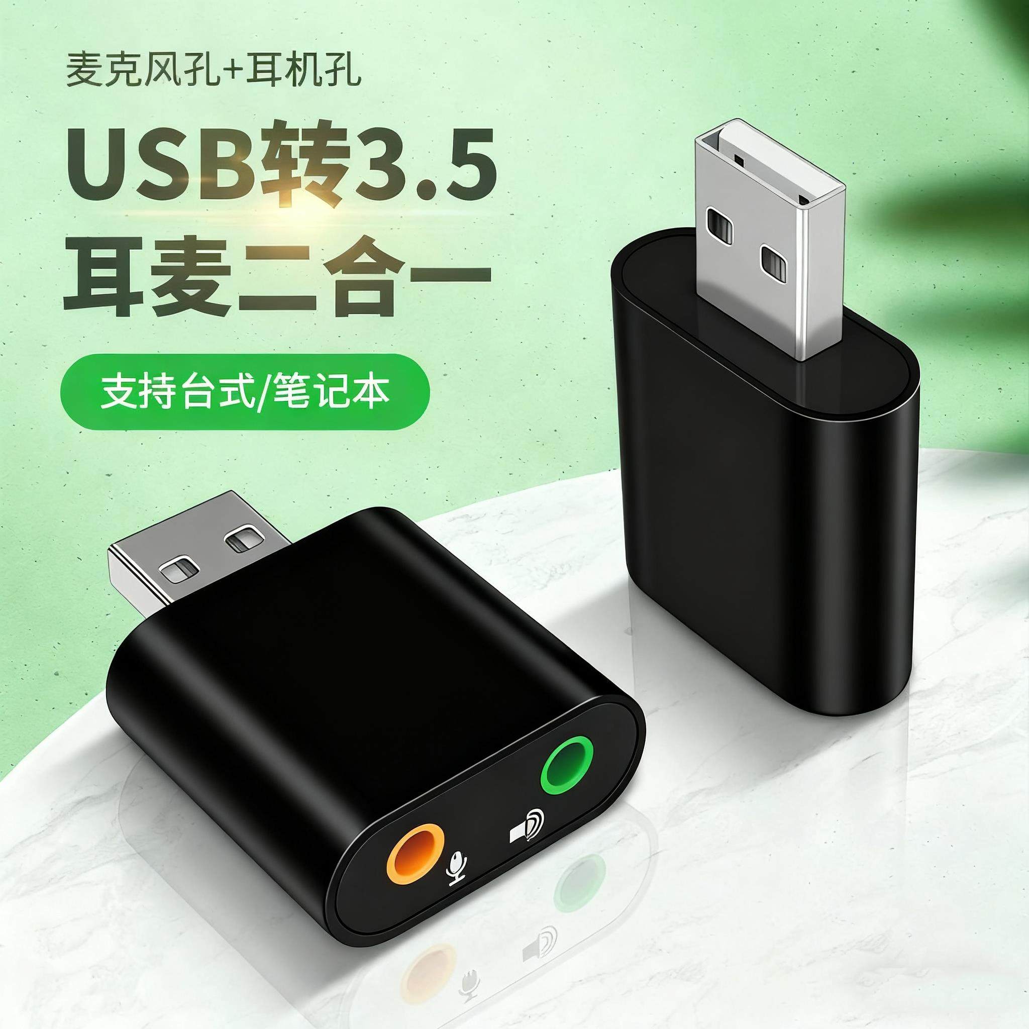 USB外置声卡双孔3.5电脑头戴式游戏耳机转换器二合一转接头笔记本