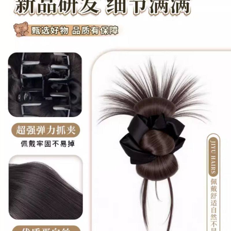 低扎丸子头假发鸡毛头抓夹盘发发包慵懒感造型头饰自然蓬松后脑勺