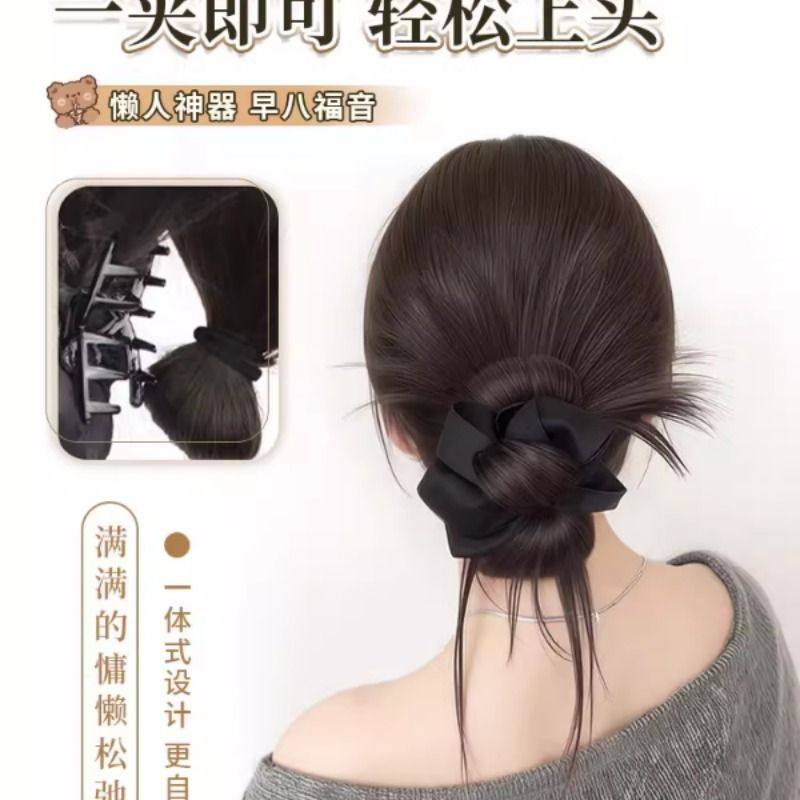 低丸子头假发抓夹女假发一体式花苞头盘发神器自然蓬松低扎假发包