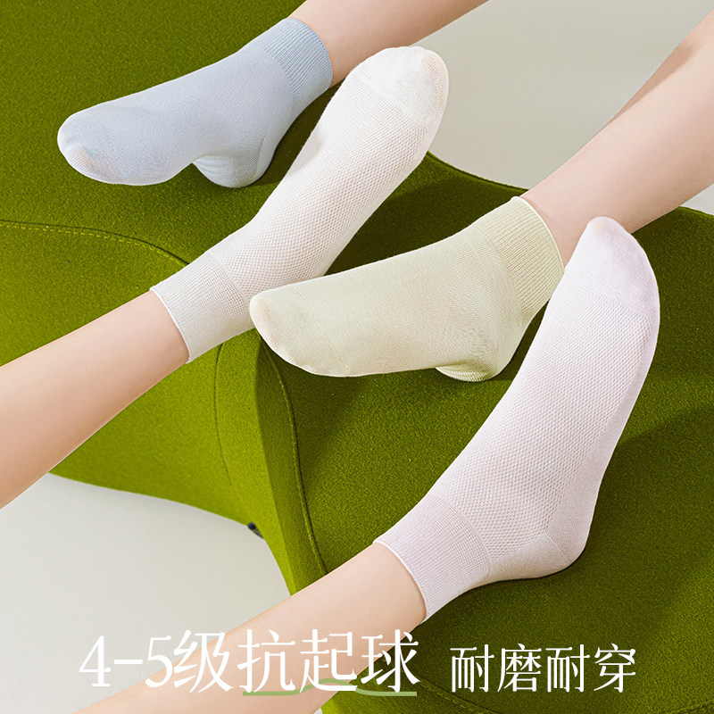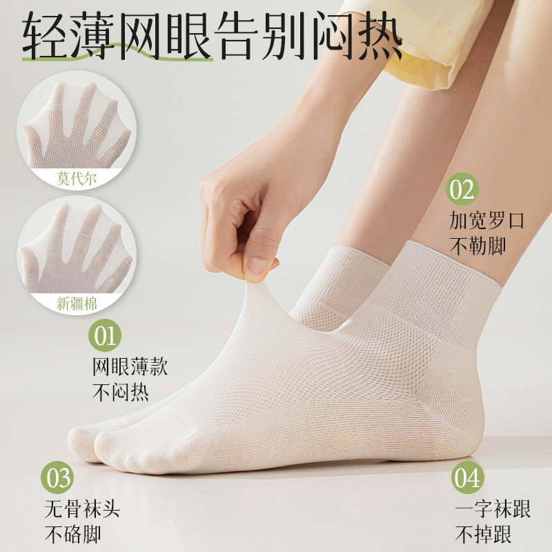 莫代尔袜子女夏季薄款短袜抗菌网眼透气夏天凉感女士白色无骨中筒