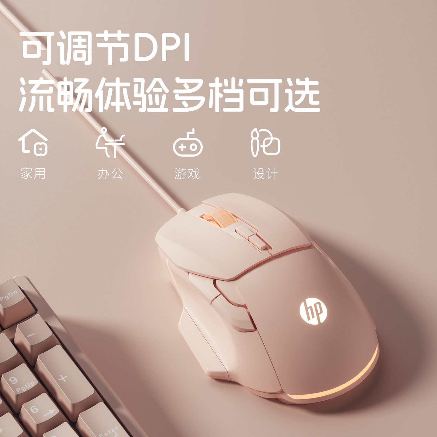 HP惠普有线鼠标高颜值静音人体工学宏定义游戏电竞办公台式笔记本
