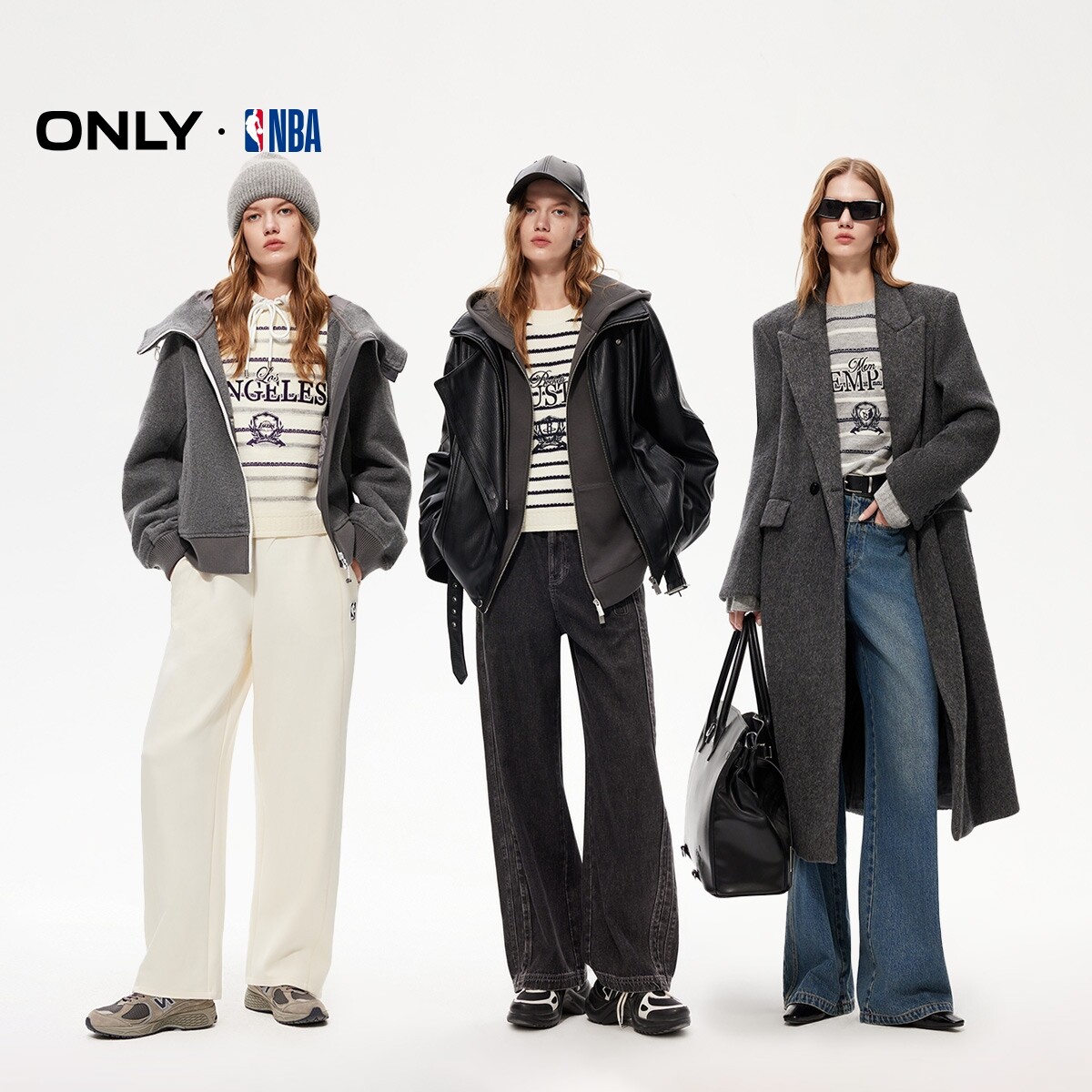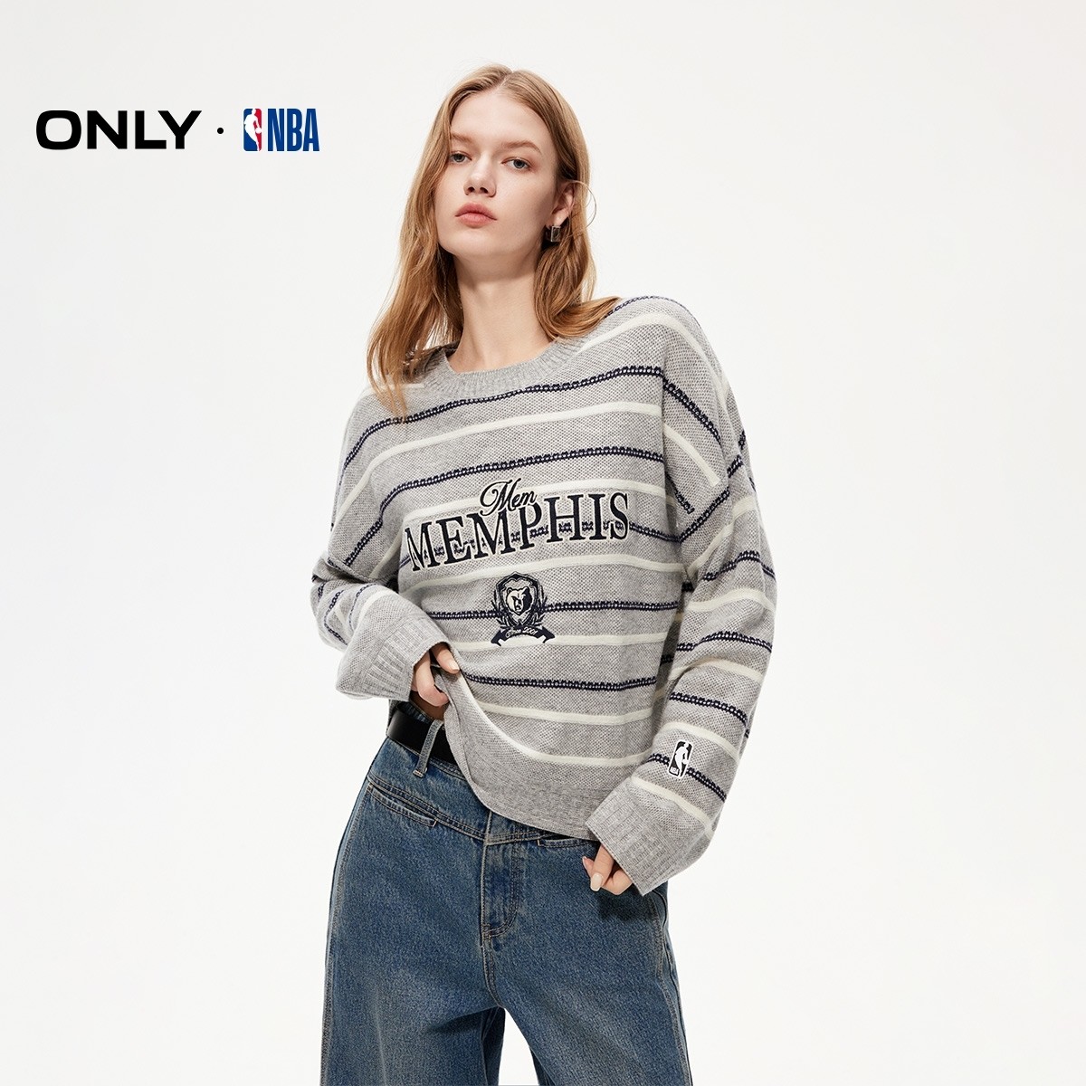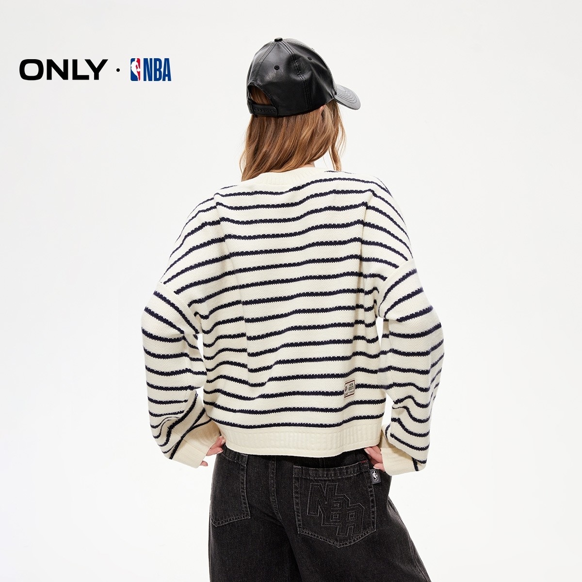 【NBA联名】ONLY春季短款条纹羊毛混纺宽松落肩针织衫女