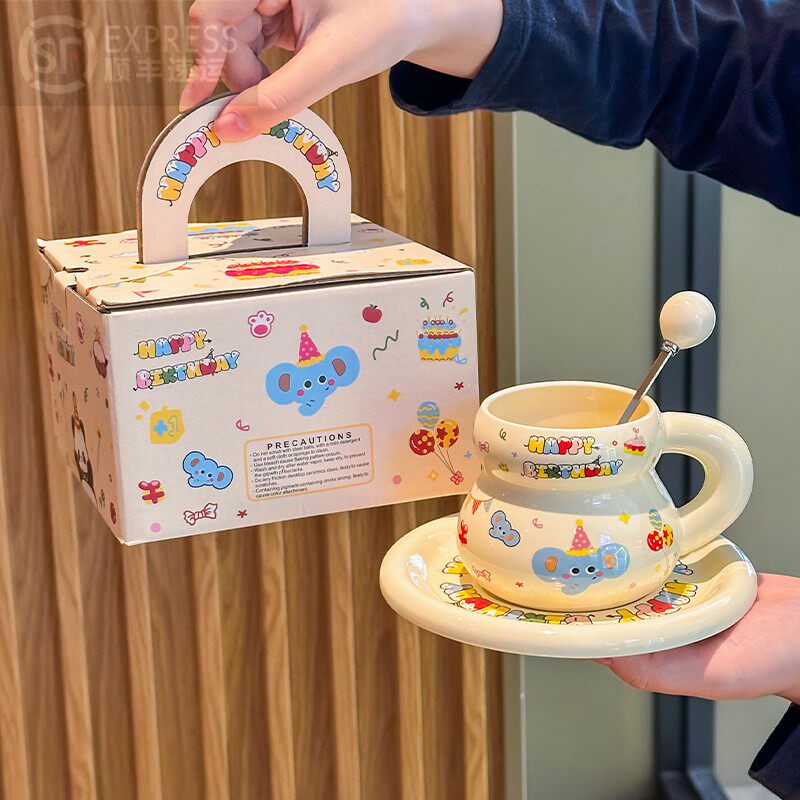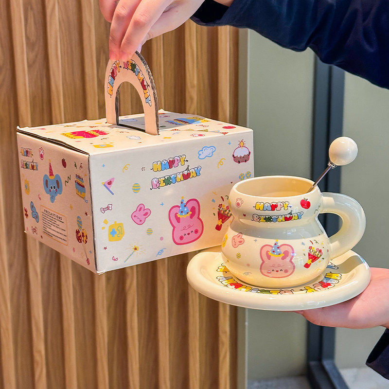 可爱卡通小兔咖啡杯礼盒装情侣对杯下午茶马克杯套装新婚生日礼物