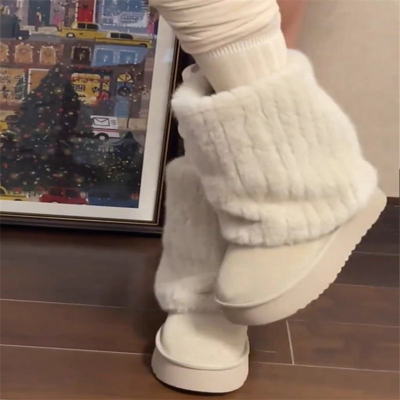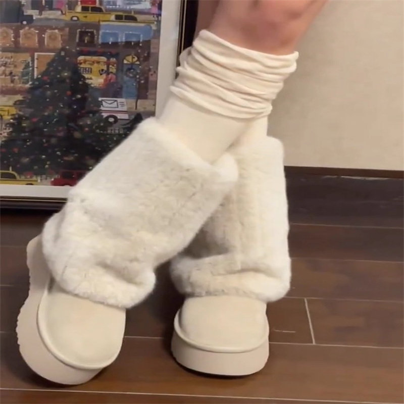 厚底雪地靴女款2024年冬季新款毛茸茸中筒裤管靴加绒加厚保暖棉鞋