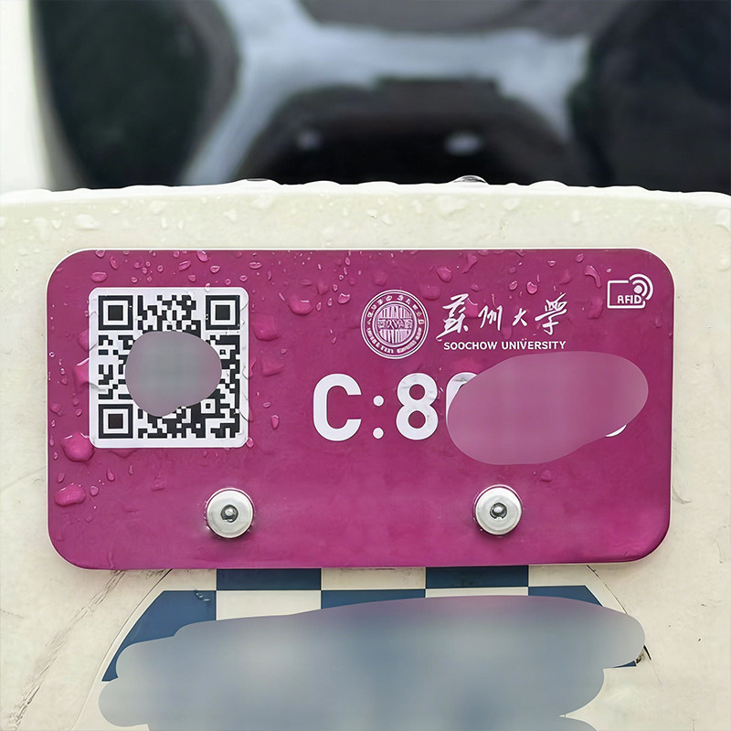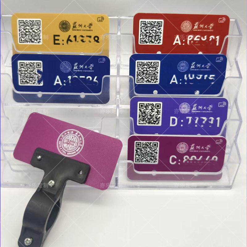 苏州大学出入牌哈啰美团通行标牌自行电动车定制校园车牌金属支架