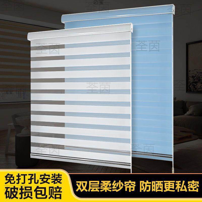 加厚免打孔百叶窗帘成品卷帘浴室双层阳台卧室遮光卫生间窗帘