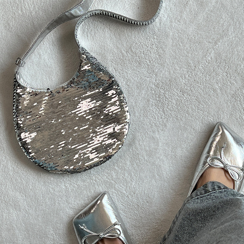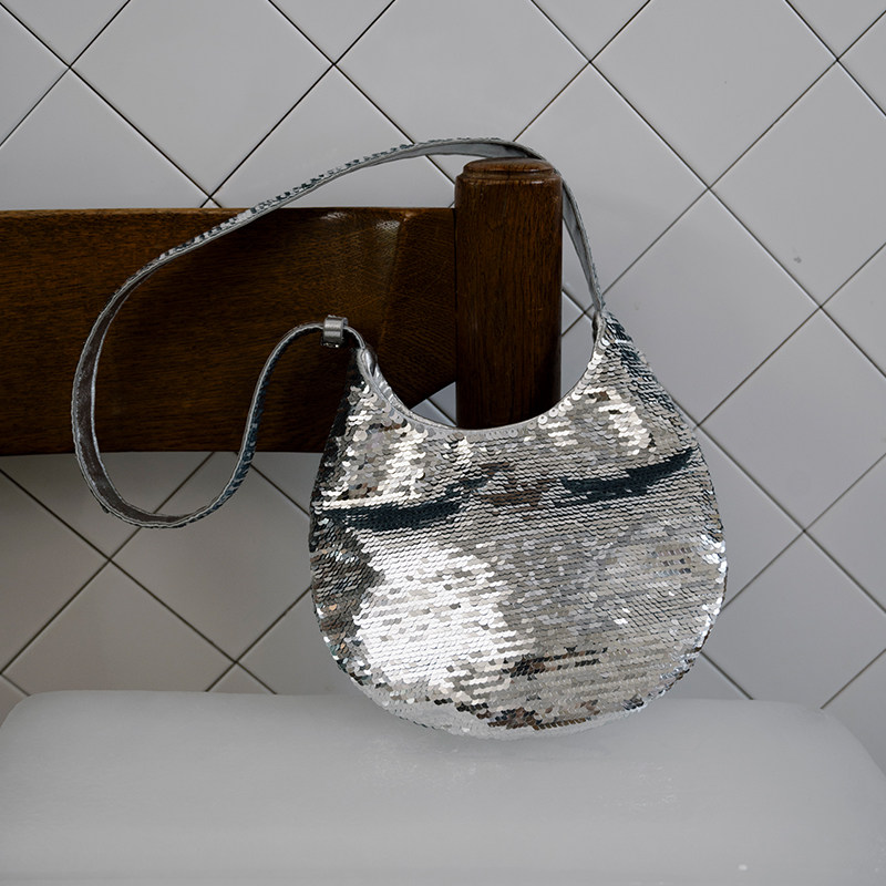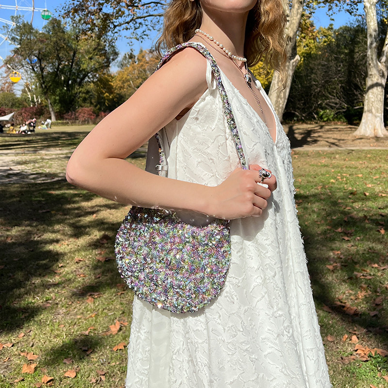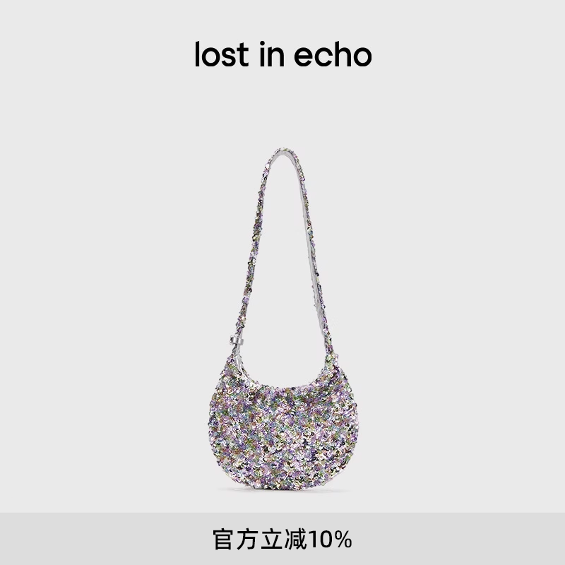 卢昱晓同款lost in echo银色时尚闪片派对小号水滴单肩包腋下包女
