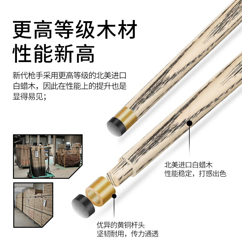 台球杆新代枪手小头中式黑八球杆斯诺克黑8中头专业桌球杆专用杆