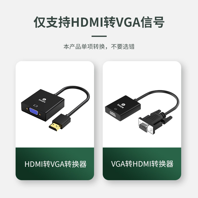 毕亚兹hdmi转vga转换器带音频视接口hdim笔记本电脑台式机顶盒