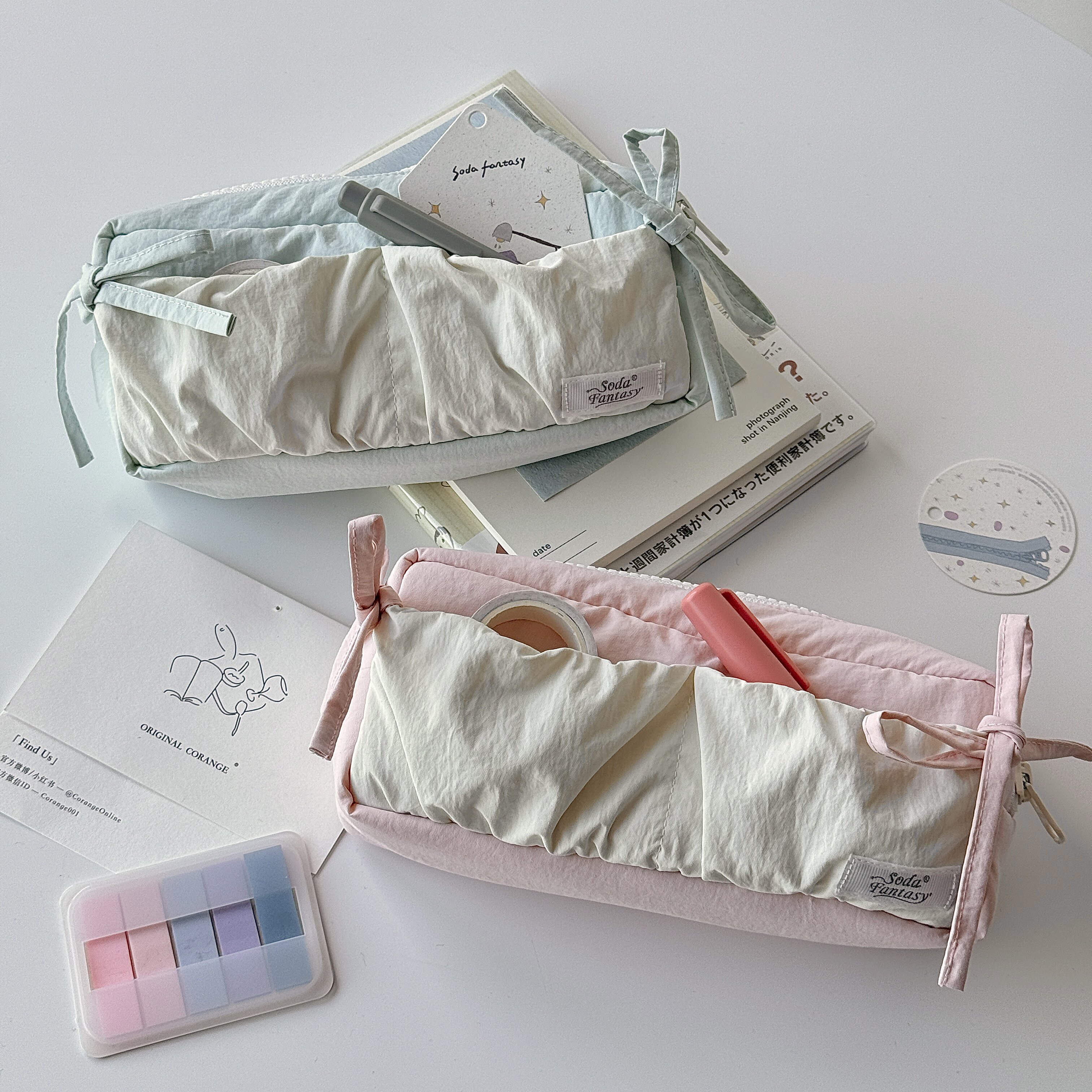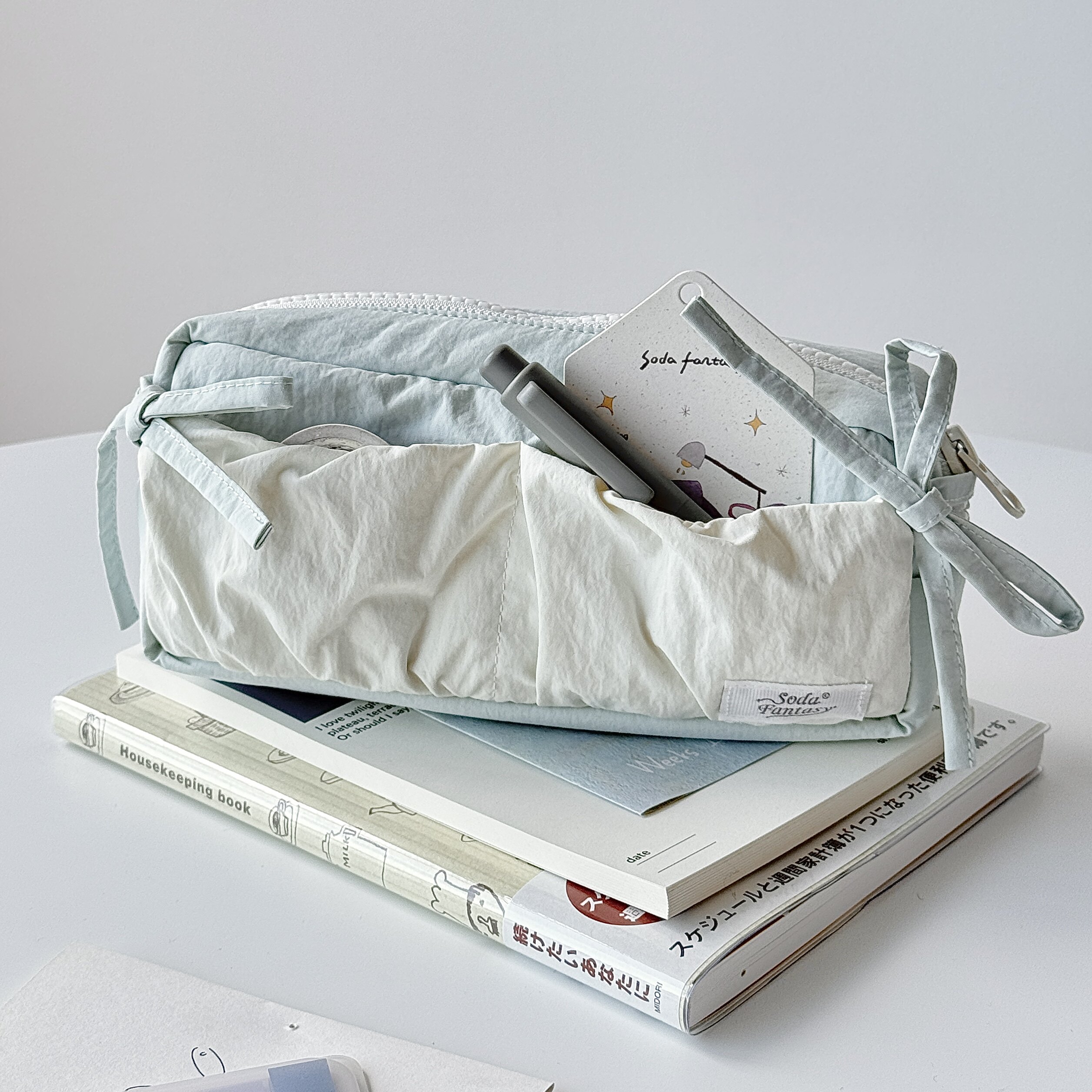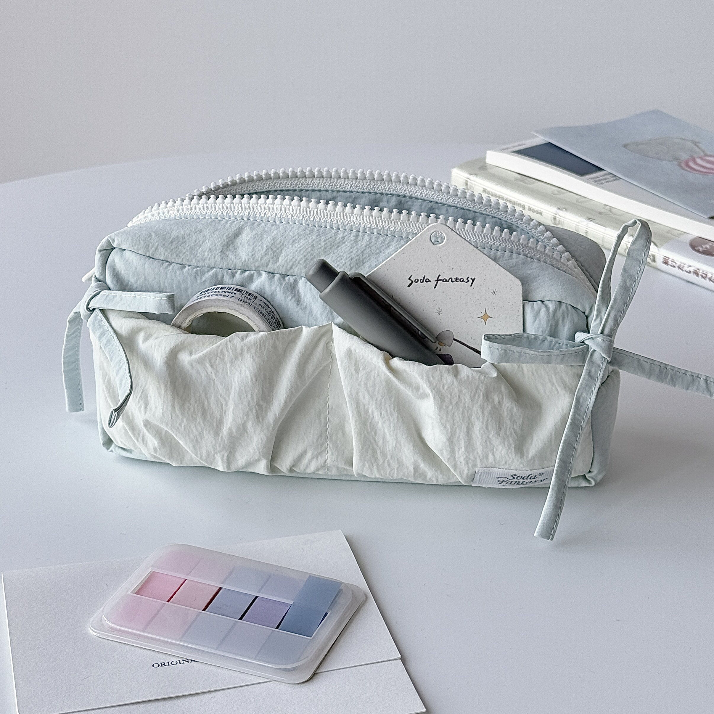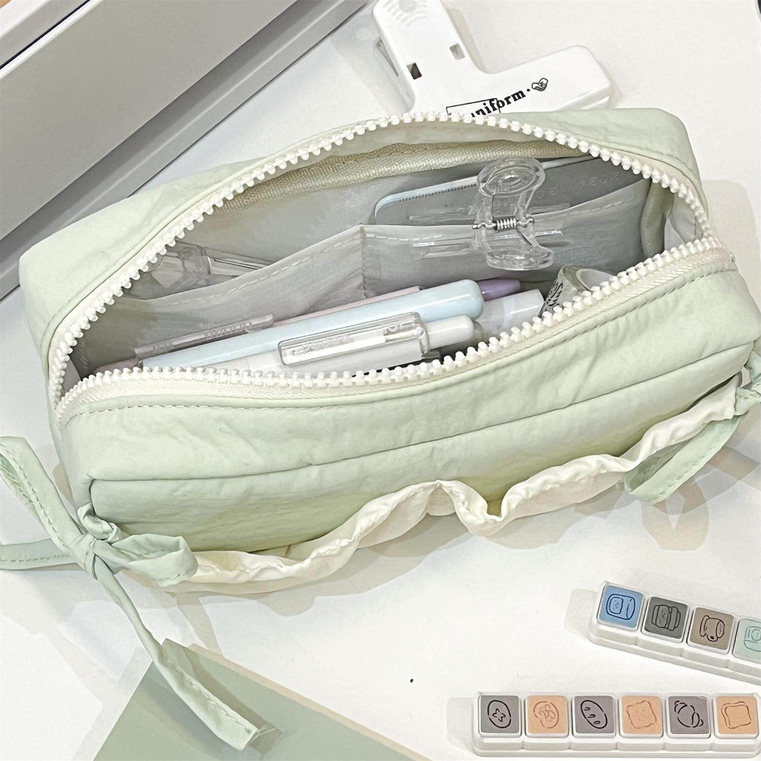 蓝色云朵吐司蝴蝶结笔袋多功能手提文具盒吧唧谷子收纳袋女孩子ins风高颜值女生学生简约笔袋旅行化妆包