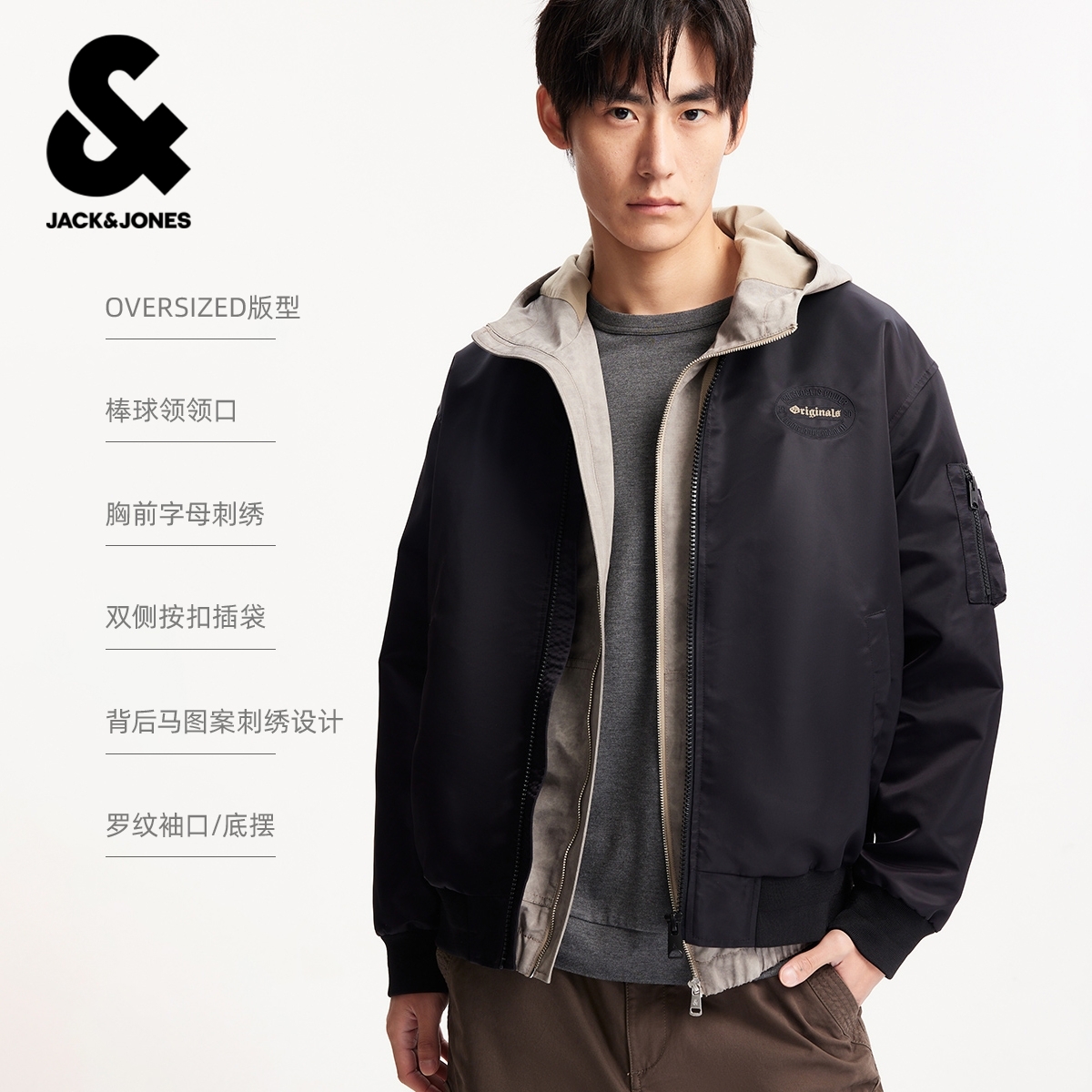 【棒球服】杰克琼斯外套男款2026年春季马年刺绣宽松夹克上衣男装