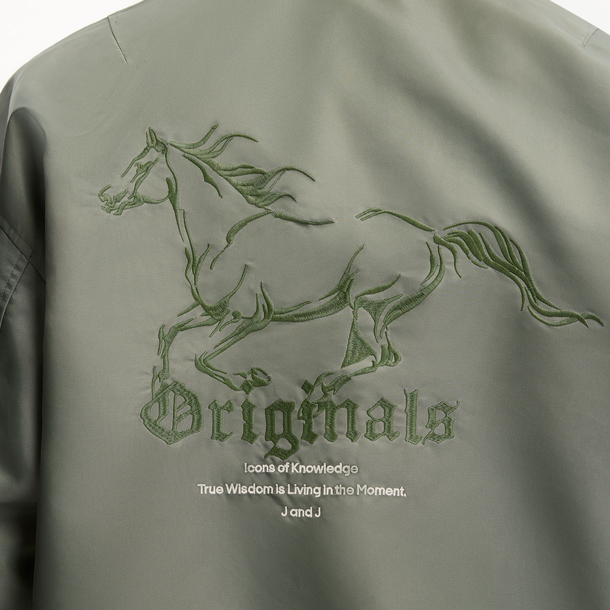 罗纹袖口及底摆,背后马图案刺绣设计