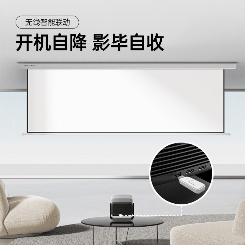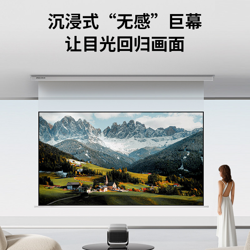 【原装】坚果100英寸悬浮投影仪幕布家用 4K显示抗光亮度增益电动遥控升降超广视角三色激光专用自动升降屏幕