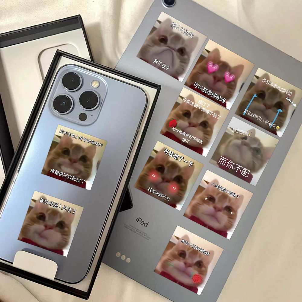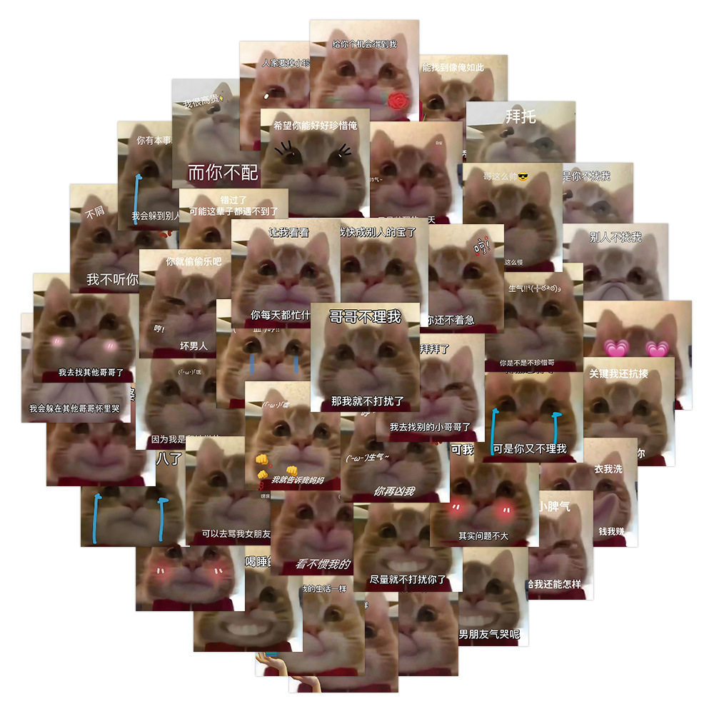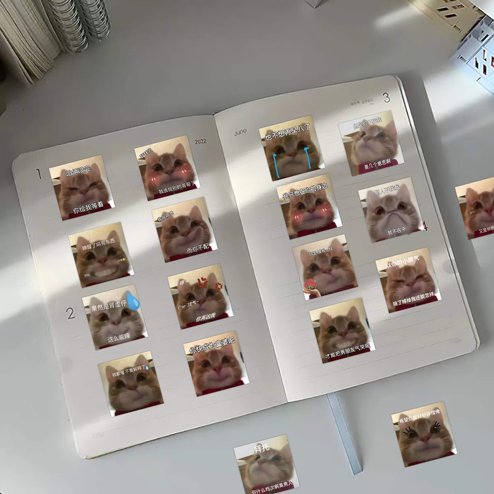 100张网红歪嘴小猫贴纸 可爱猫咪狗狗仓鼠表情包手机壳装饰小贴画