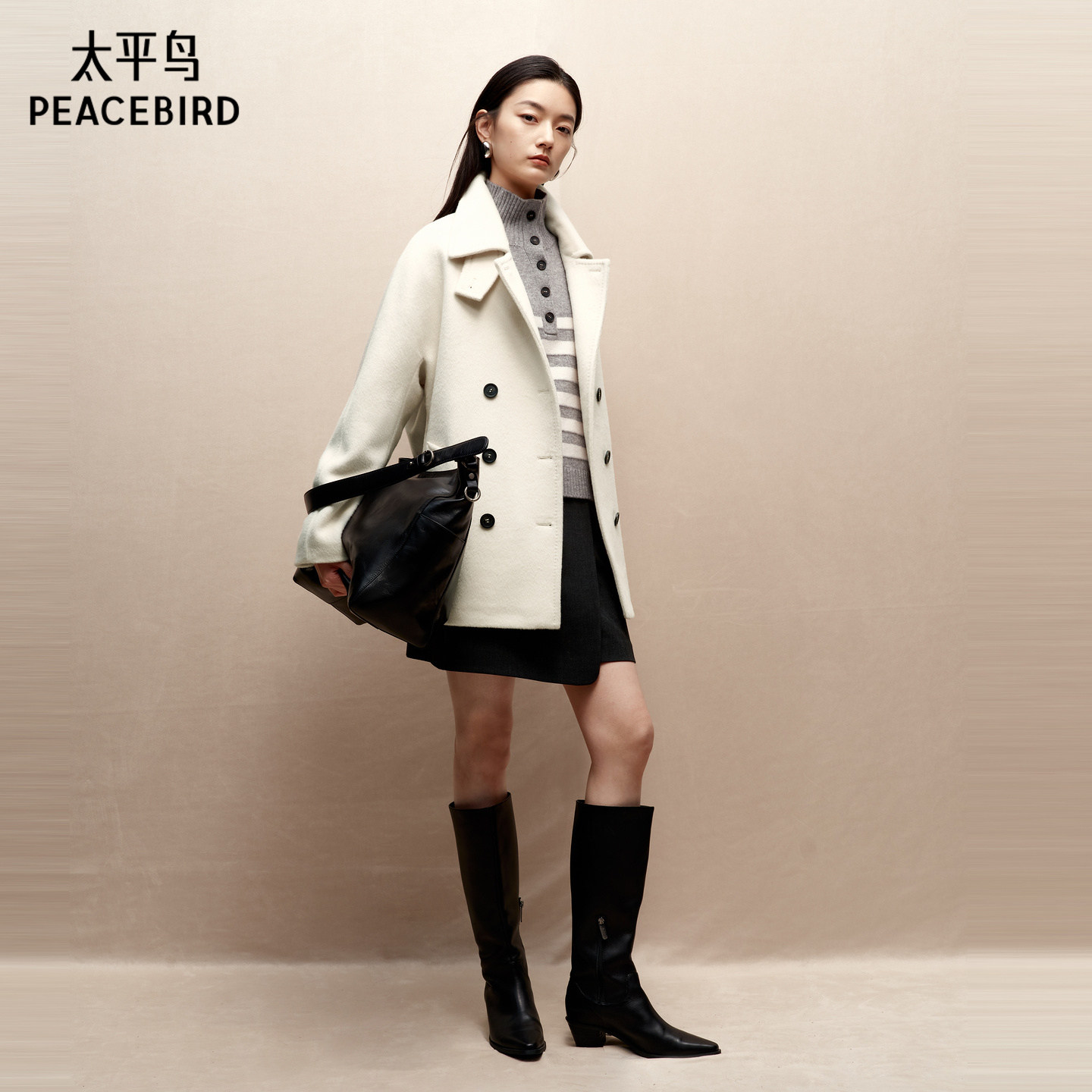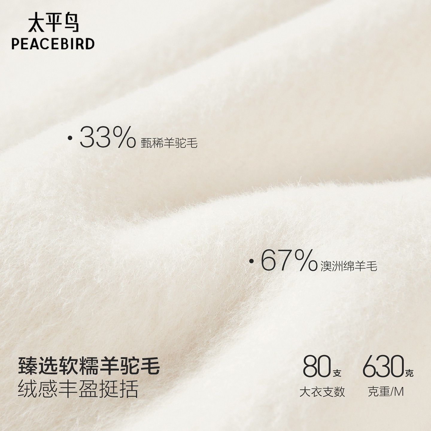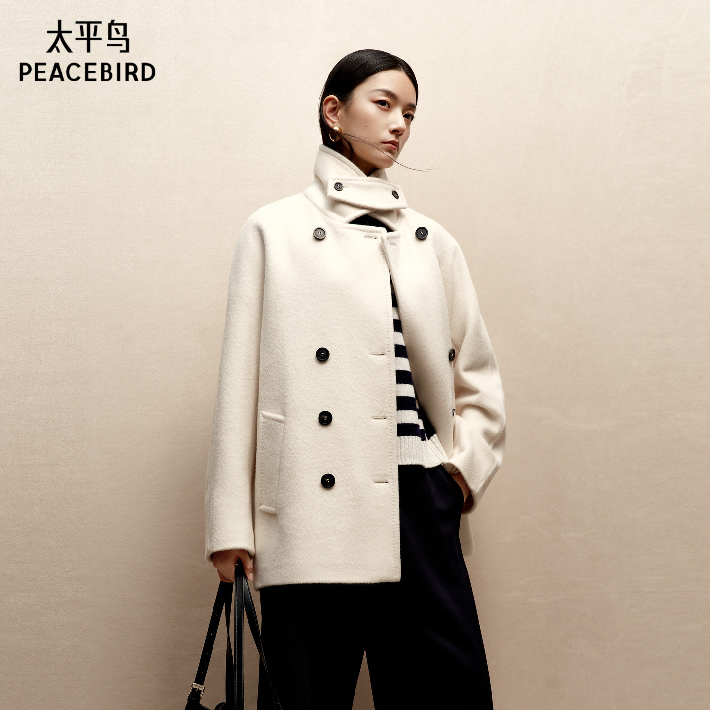 【宣璐同款】太平鸟甄绒系列雪绒贝贝33%羊驼高支呢大衣A1AAF4332