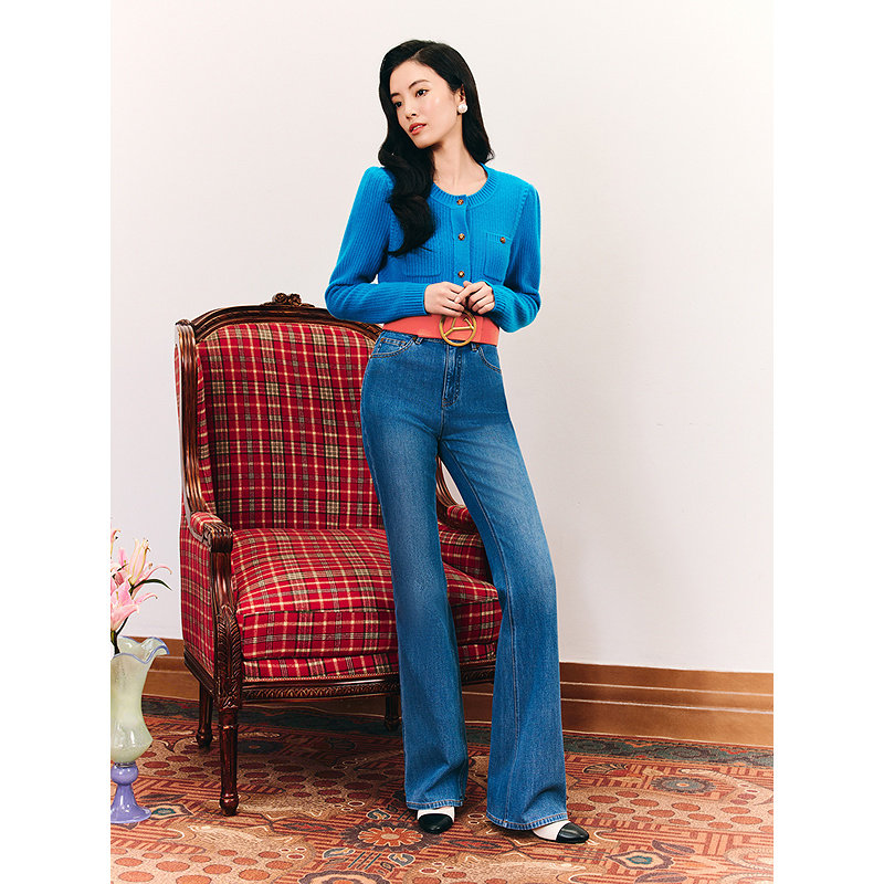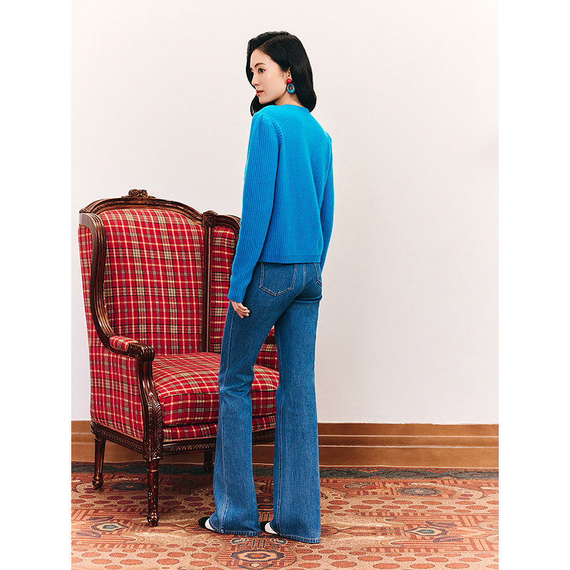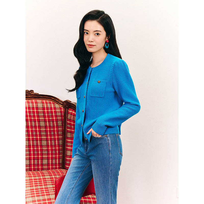 【1996系列】YINER音儿2026春季新款时尚宝石蓝羊毛羊绒针织开衫